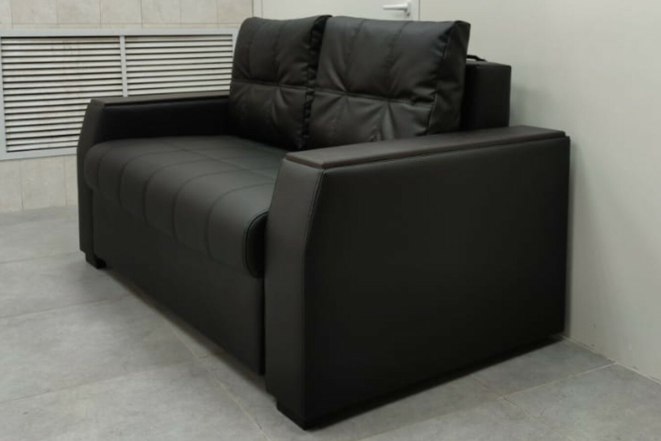 Прямой диван Атлант Мини черный экокожа, выкатной, 164х90х81 см, с ящиком для белья информация: