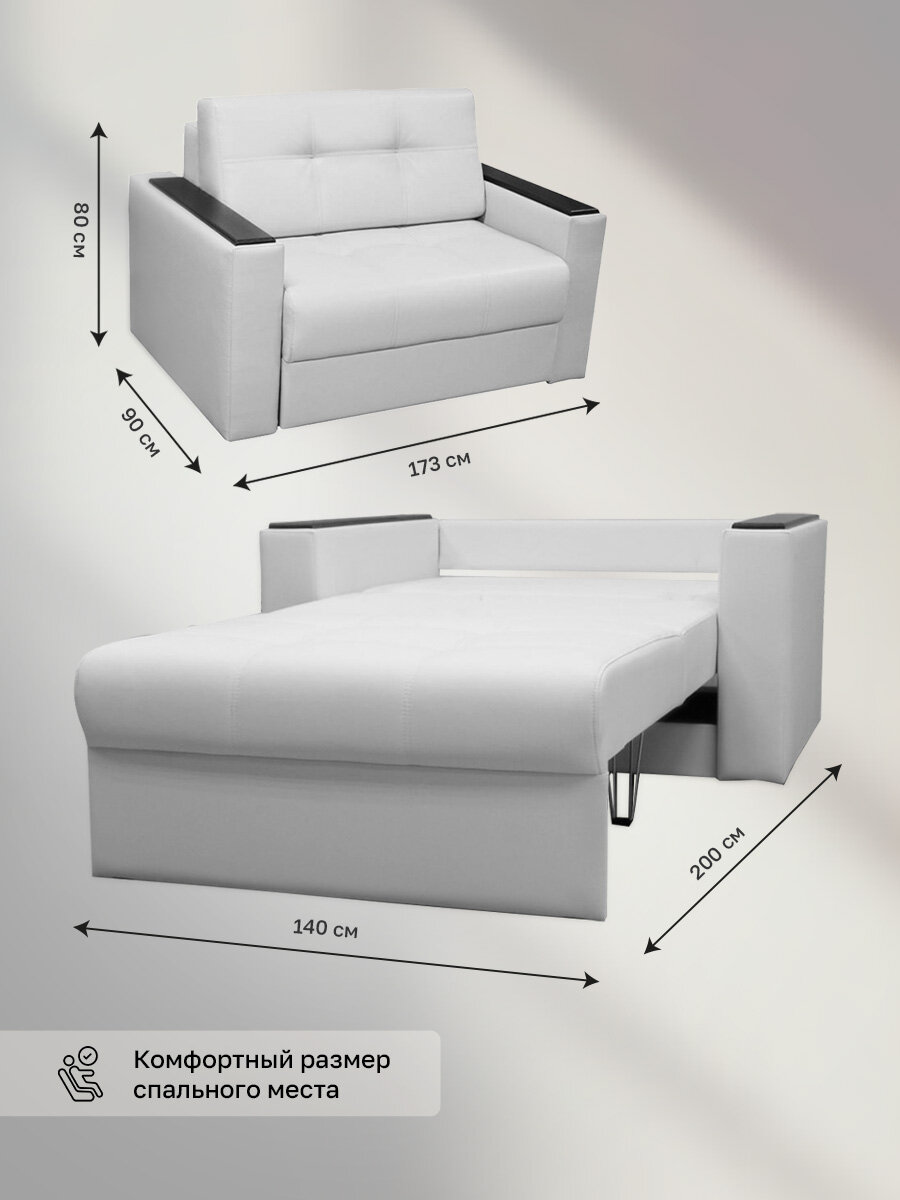 Прямой диван Атланта Мини 140 Белая Экокожа, выкатной, 173х90х80 см, с ящиком для белья 29 580 ₽