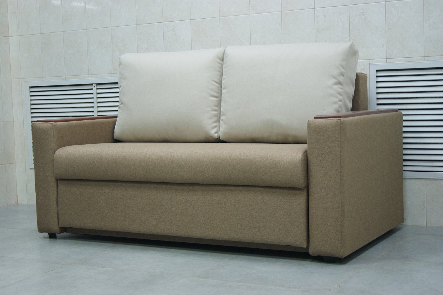 Отзывы на Прямой диван Дубай коричнево-бежевая рогожка, выкатной, 172х93х82 см, с ящиком для белья