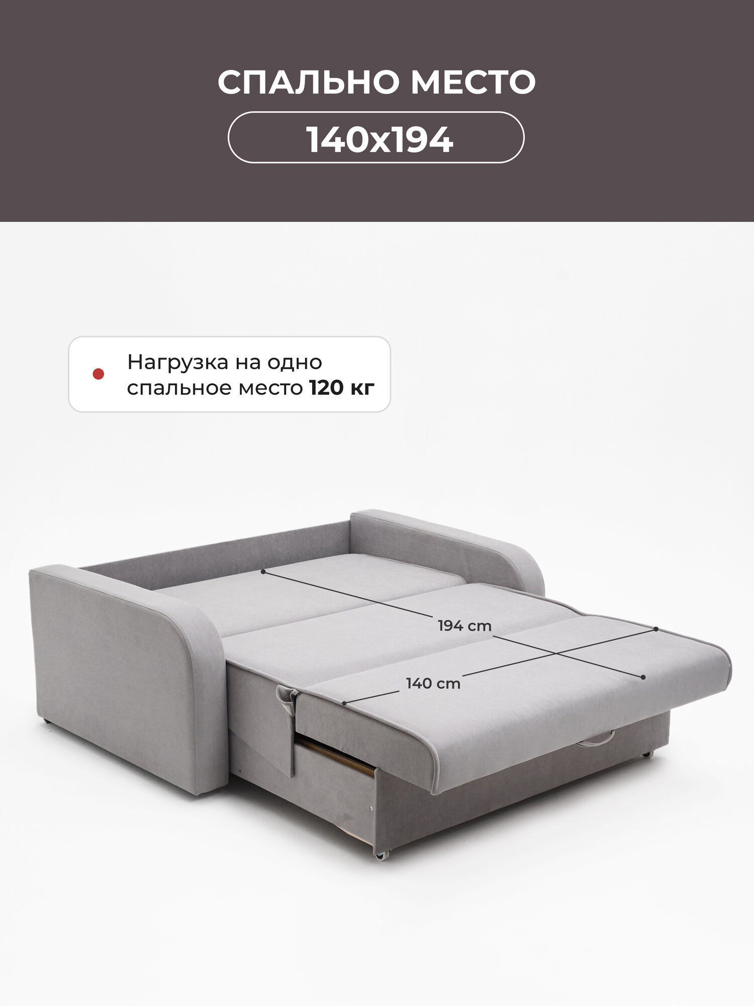 Диван-кровать раскладной двухспальный Мартин 140, механизм Аккордеон, антивандальный велюр, 170*105*93, цвет серый информация: