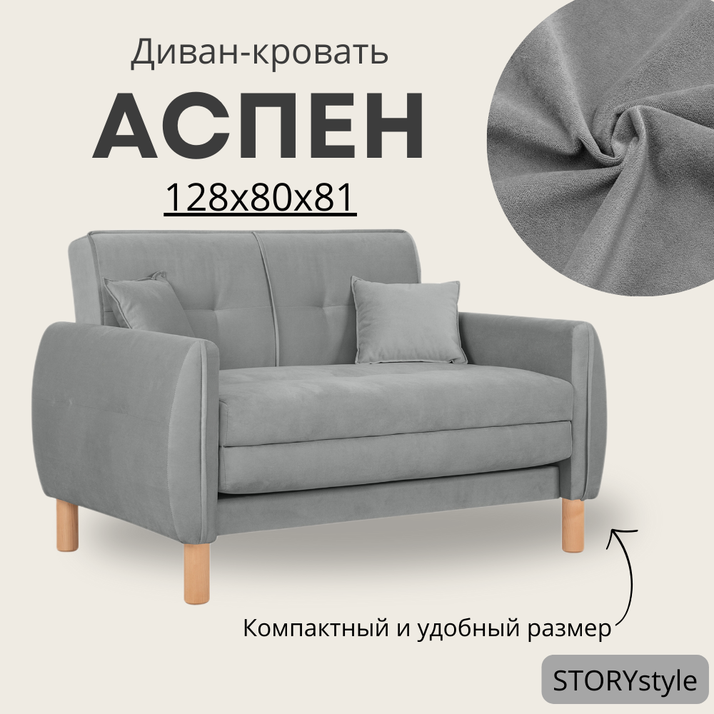 Диван-кровать Аспен , 128*80*81, спальное 100*194, велюр серый, Велутто 32 информация: