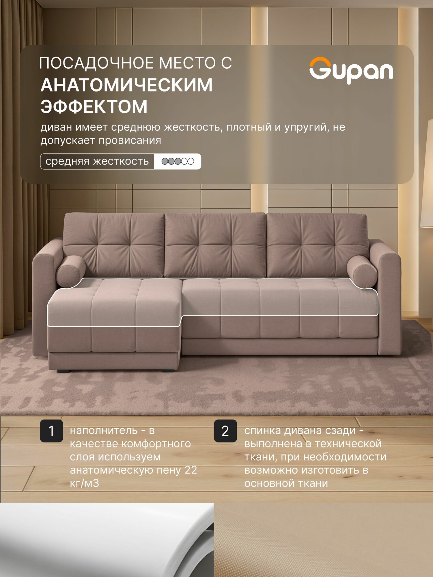 Отзывы на Диван угловой Gupan Скайти Велюр Amigo Latte, диван раскладной, механизм еврокнижка, беспружинный, с ящиком для белья