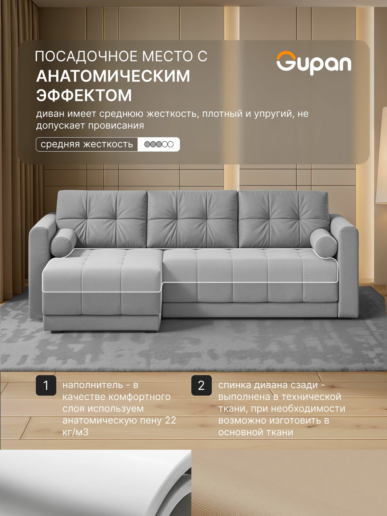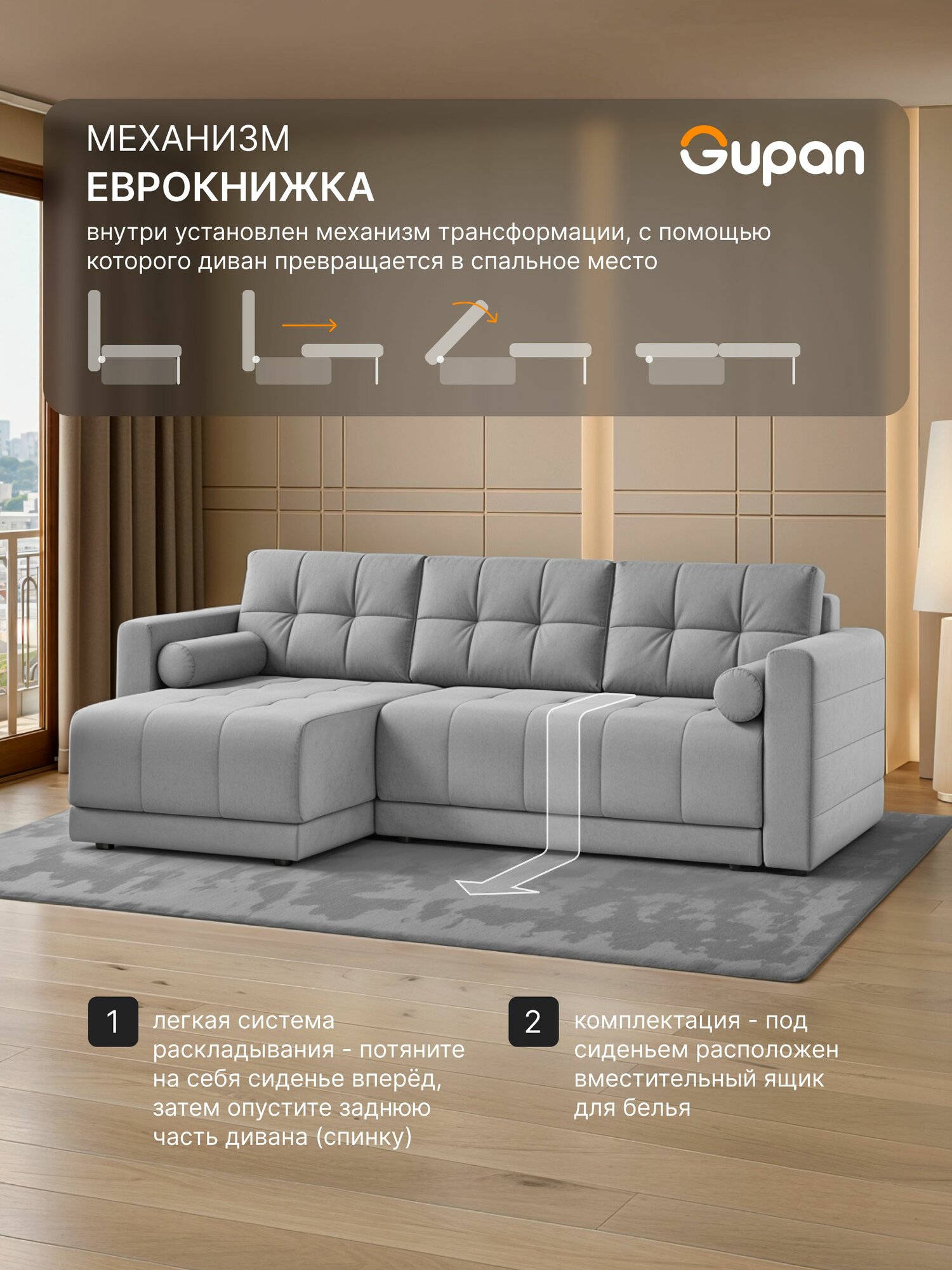 10 цен на Диван угловой Gupan Скайти Велюр Amigo Ash, диван раскладной, механизм еврокнижка, беспружинный, с ящиком для белья