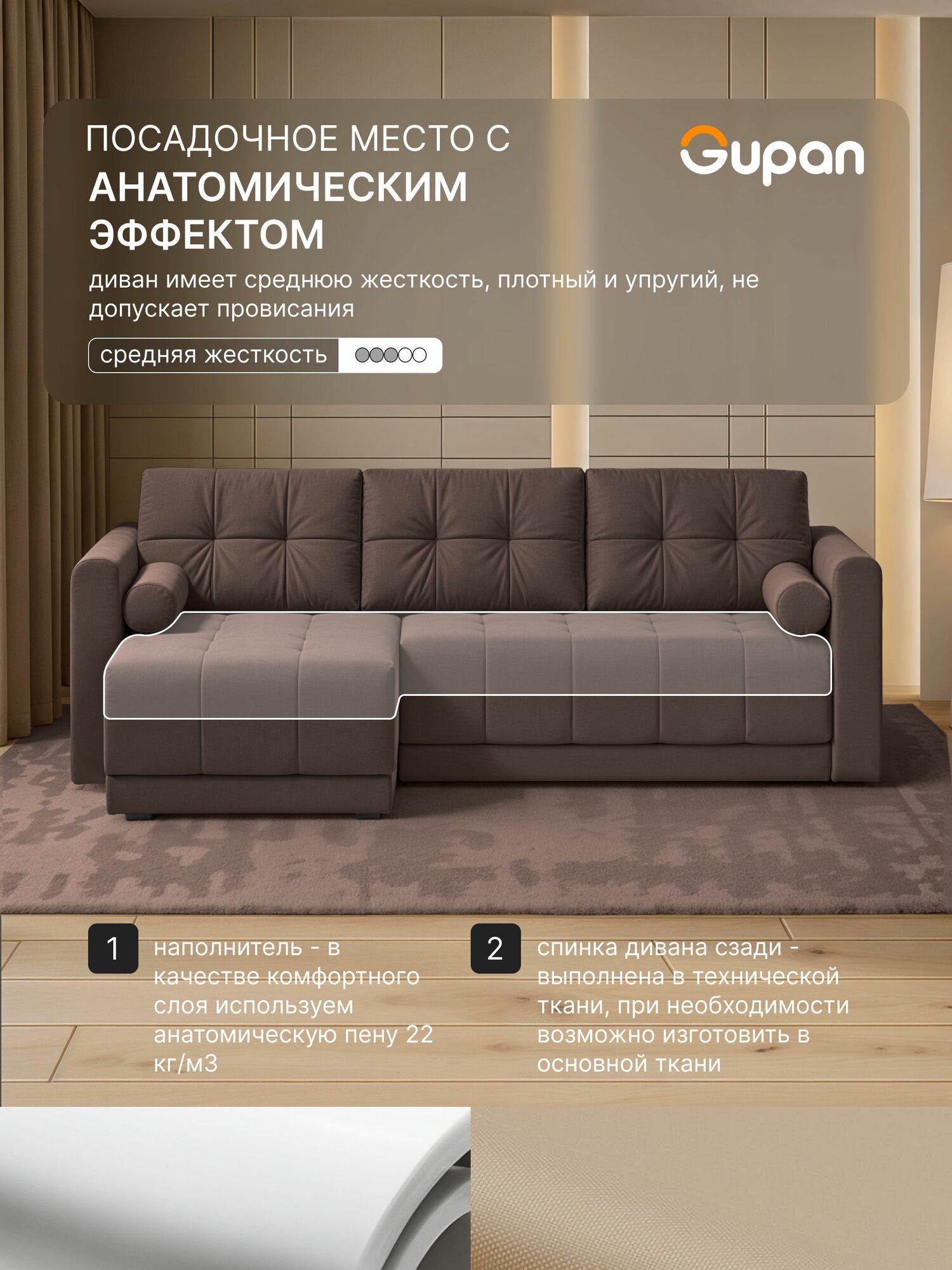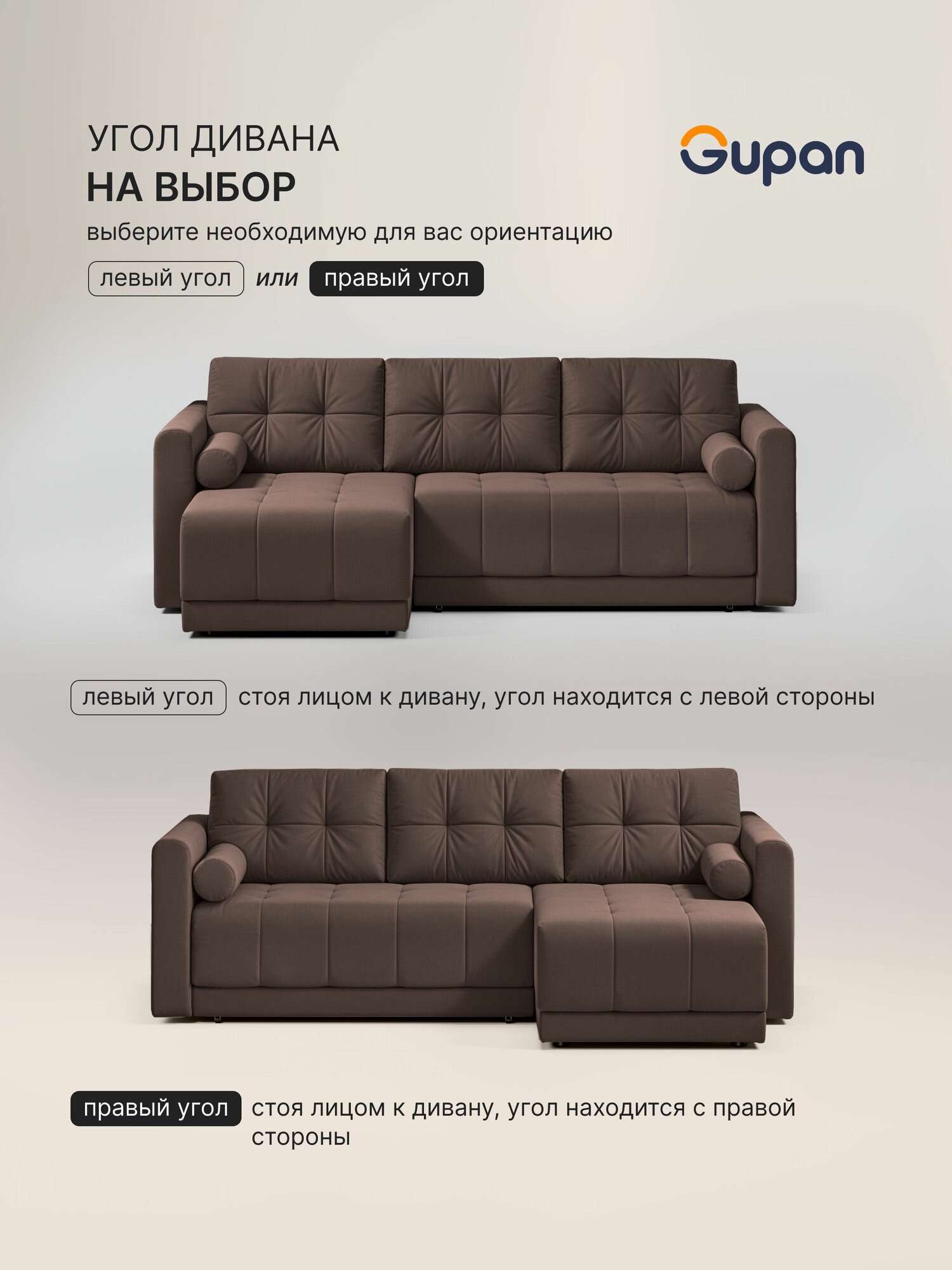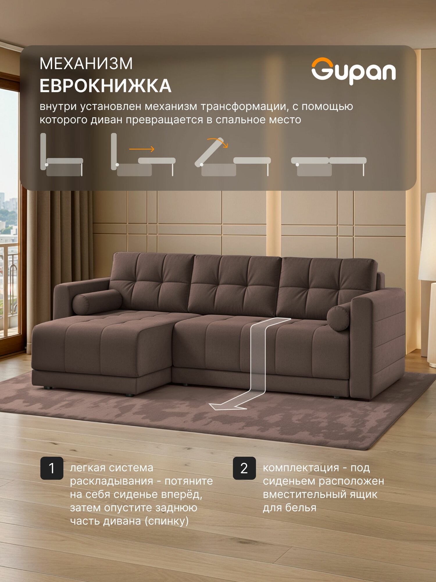 Отзывы на Диван угловой Gupan Скайти Велюр Amigo Brown, диван раскладной, механизм еврокнижка, беспружинный, с ящиком для белья