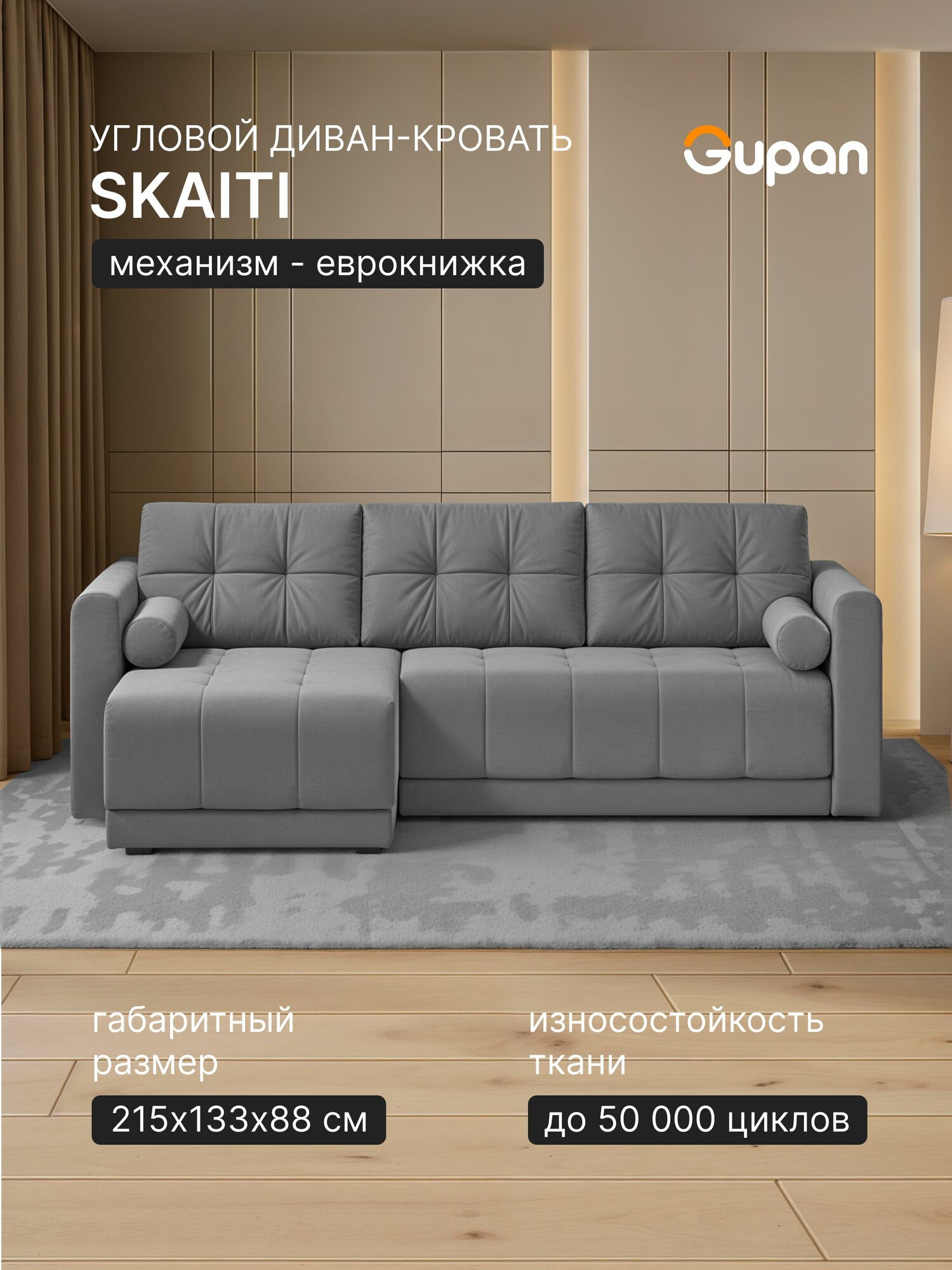 Отзывы на Диван угловой Gupan Скайти Велюр Amigo Grey, диван раскладной, механизм еврокнижка, беспружинный, с ящиком для белья