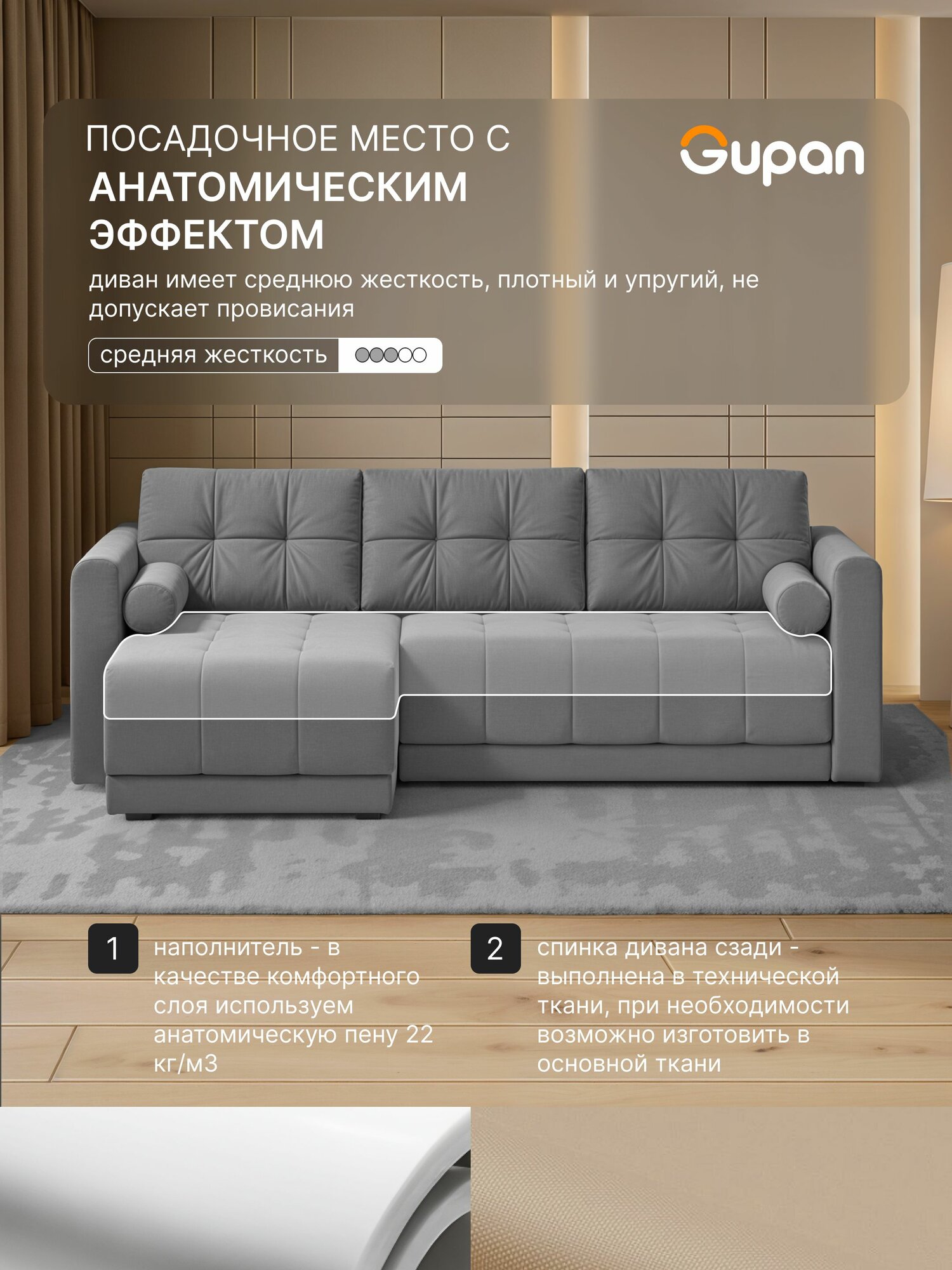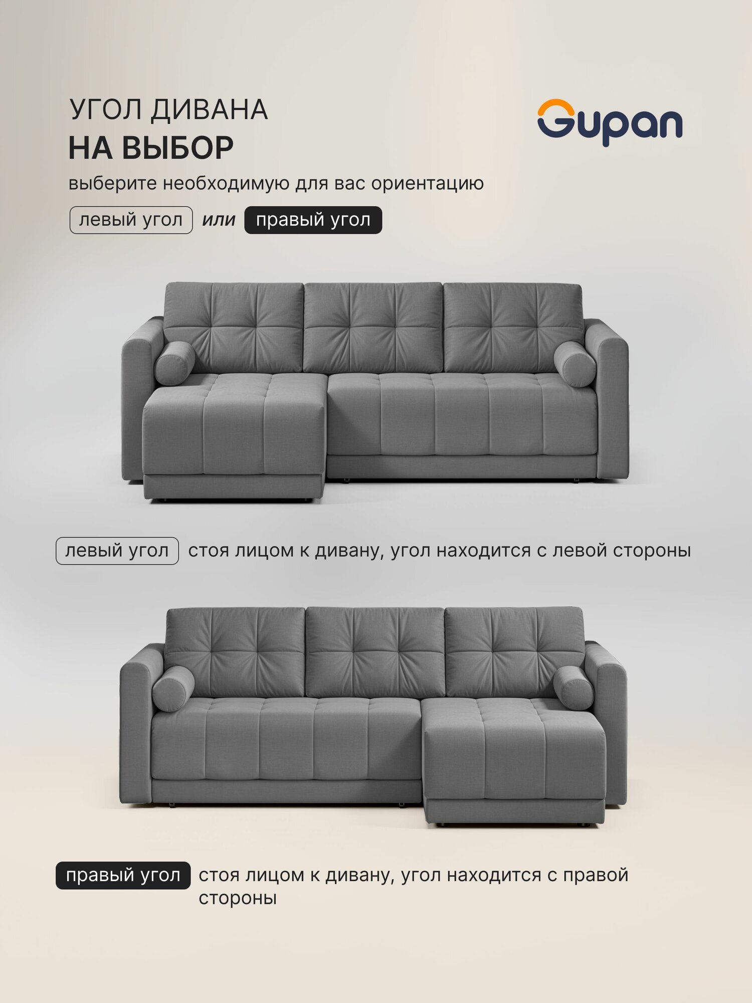10 цен на Диван угловой Gupan Скайти Велюр Amigo Grey, диван раскладной, механизм еврокнижка, беспружинный, с ящиком для белья
