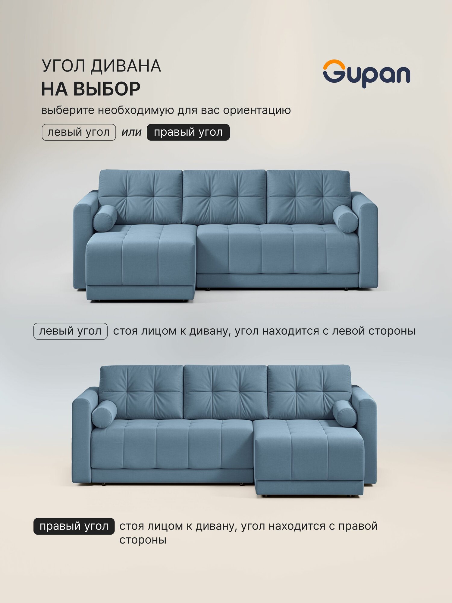 Отзывы на Диван угловой Gupan Скайти Велюр Amigo Blue, диван раскладной, механизм еврокнижка, беспружинный, с ящиком для белья
