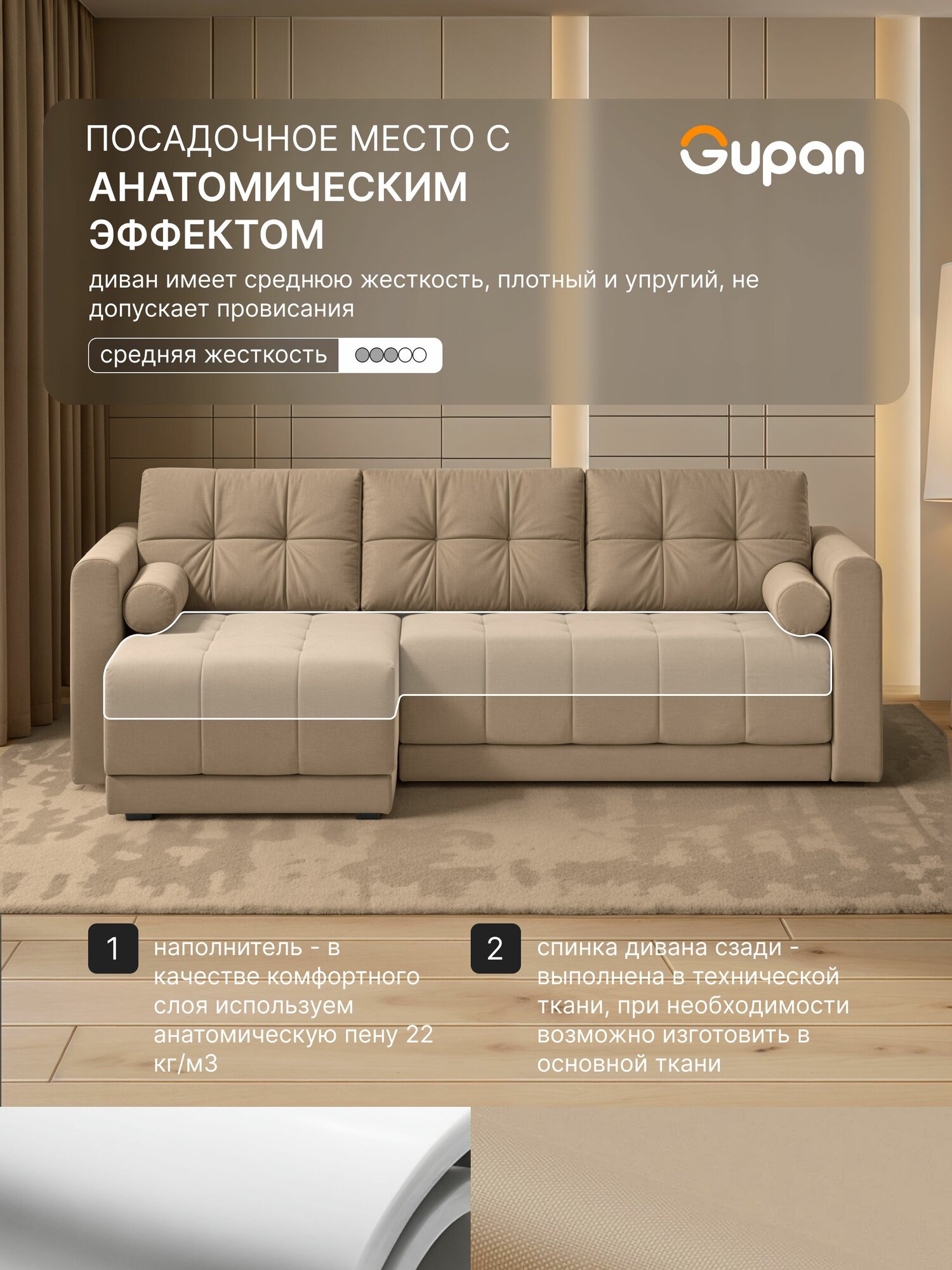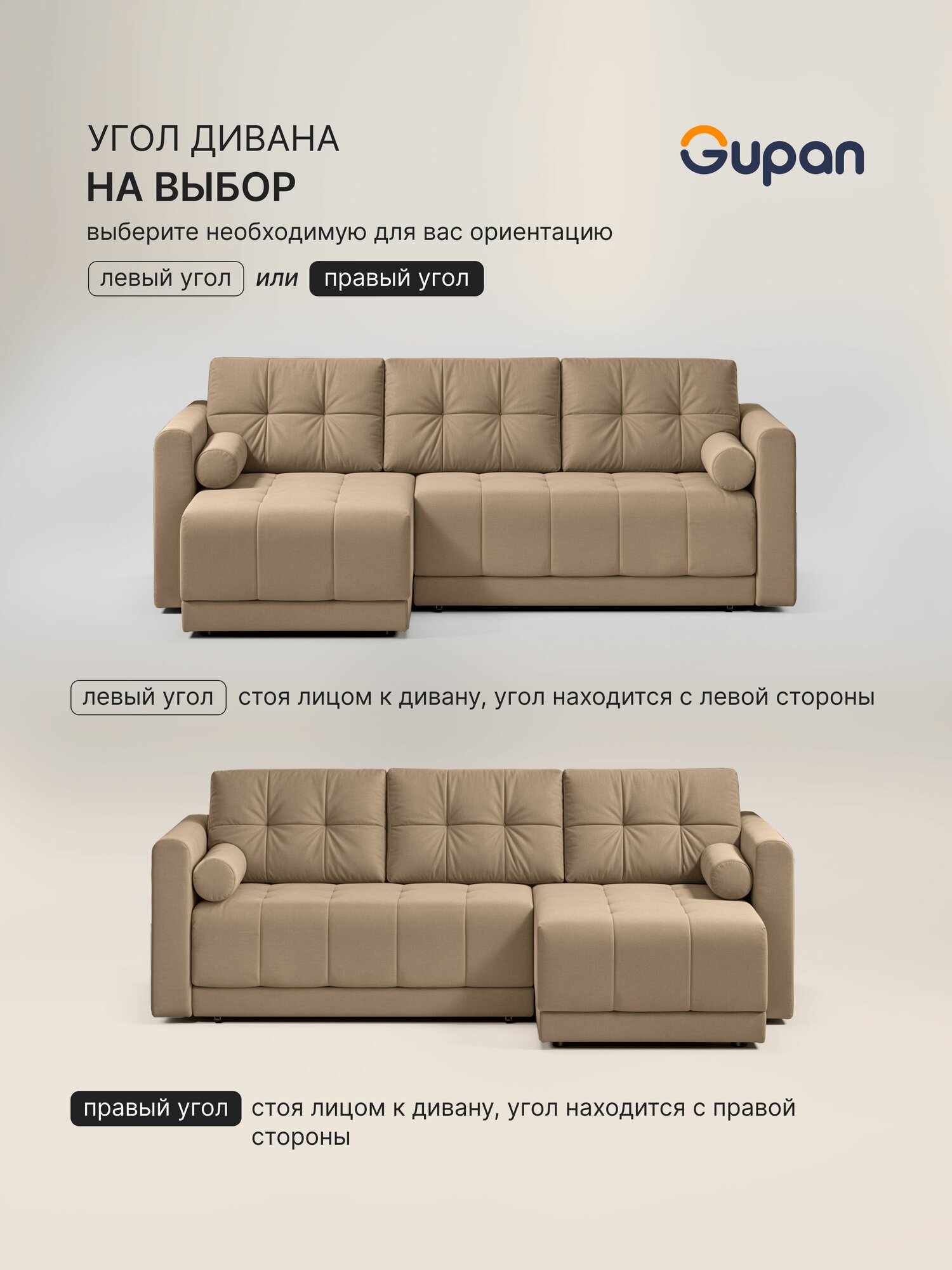 10 цен на Диван угловой Gupan Скайти Велюр Amigo Beige, диван раскладной, механизм еврокнижка, беспружинный, с ящиком для белья