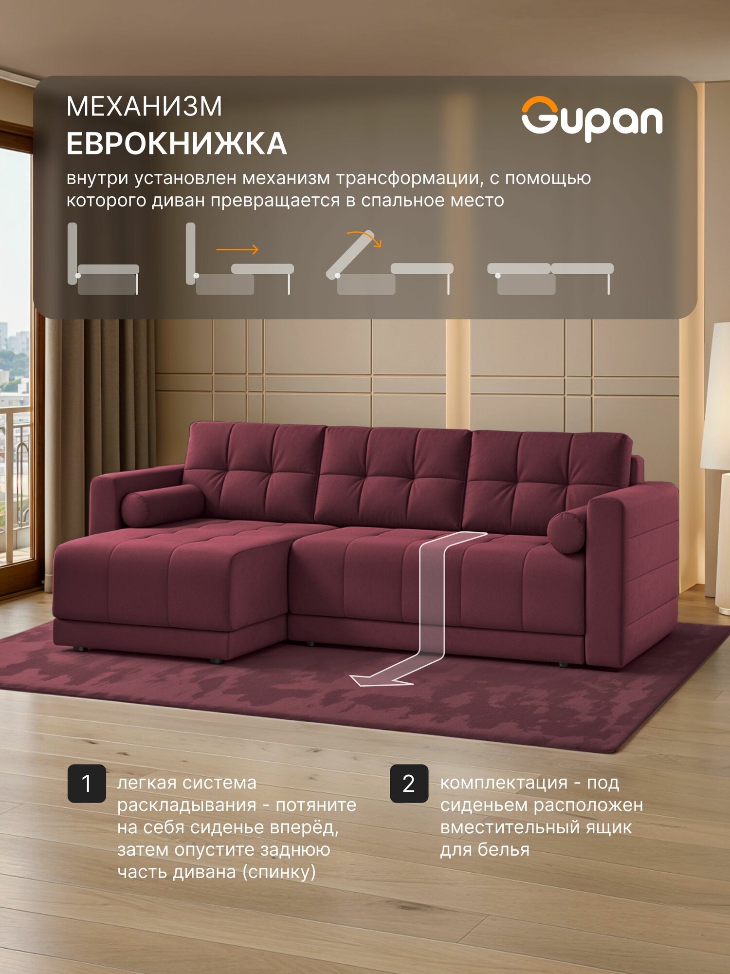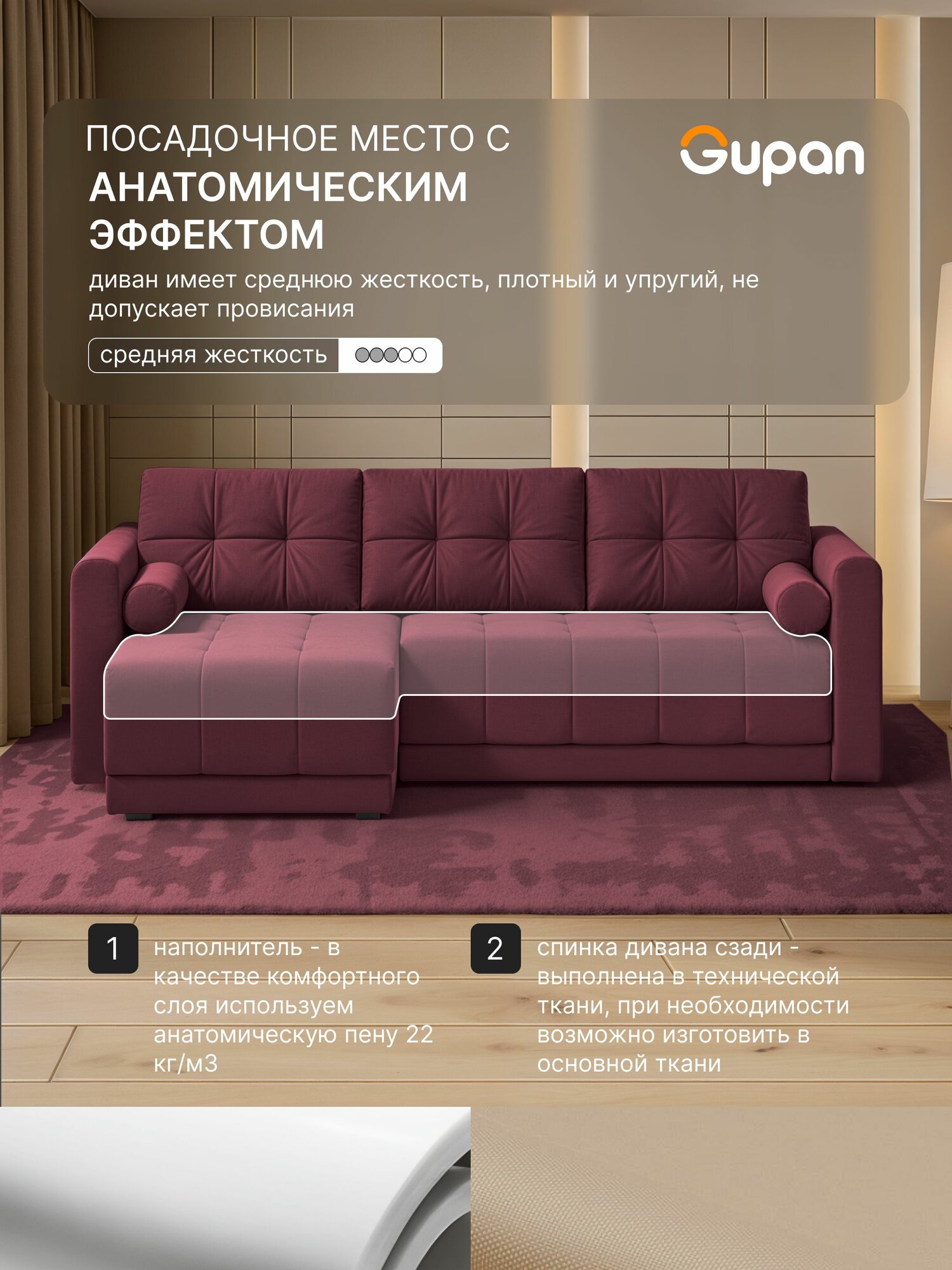 Диван угловой Gupan Скайти Велюр Amigo Berry, диван раскладной, механизм еврокнижка, беспружинный, с ящиком для белья 39 248 ₽