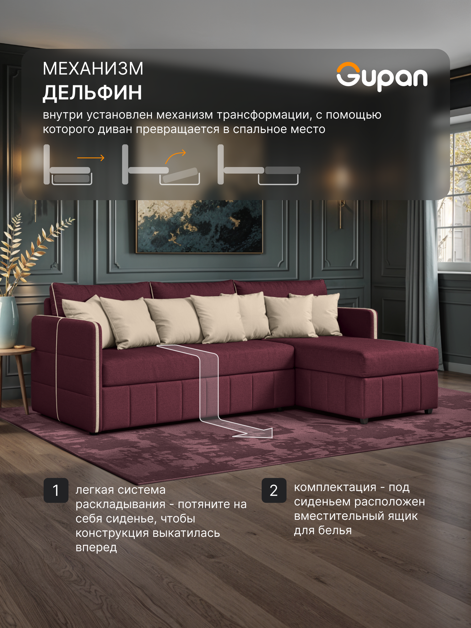 Отзывы на Диван угловой Gupan Граус Велюр Amigo Dimrose, раскладной, механизм дельфин, беспружинный, с ящиком для белья