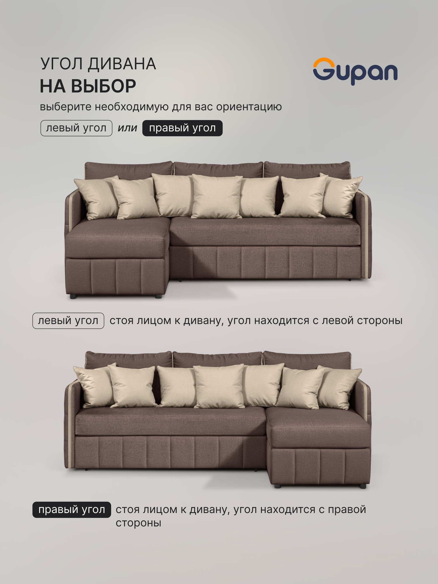 10 цен на Диван угловой Gupan Граус Велюр Amigo Chocolate, раскладной, механизм дельфин, беспружинный, с ящиком для белья