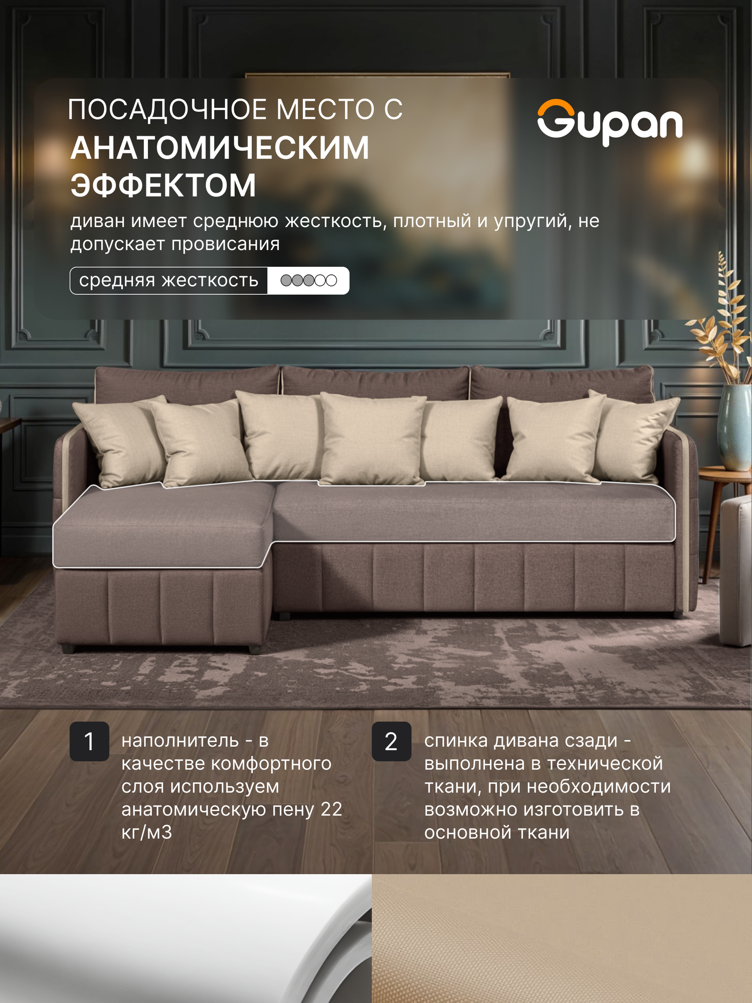 Диван угловой Gupan Граус Велюр Amigo Latte, раскладной, механизм дельфин, беспружинный, с ящиком для белья 44 960 ₽