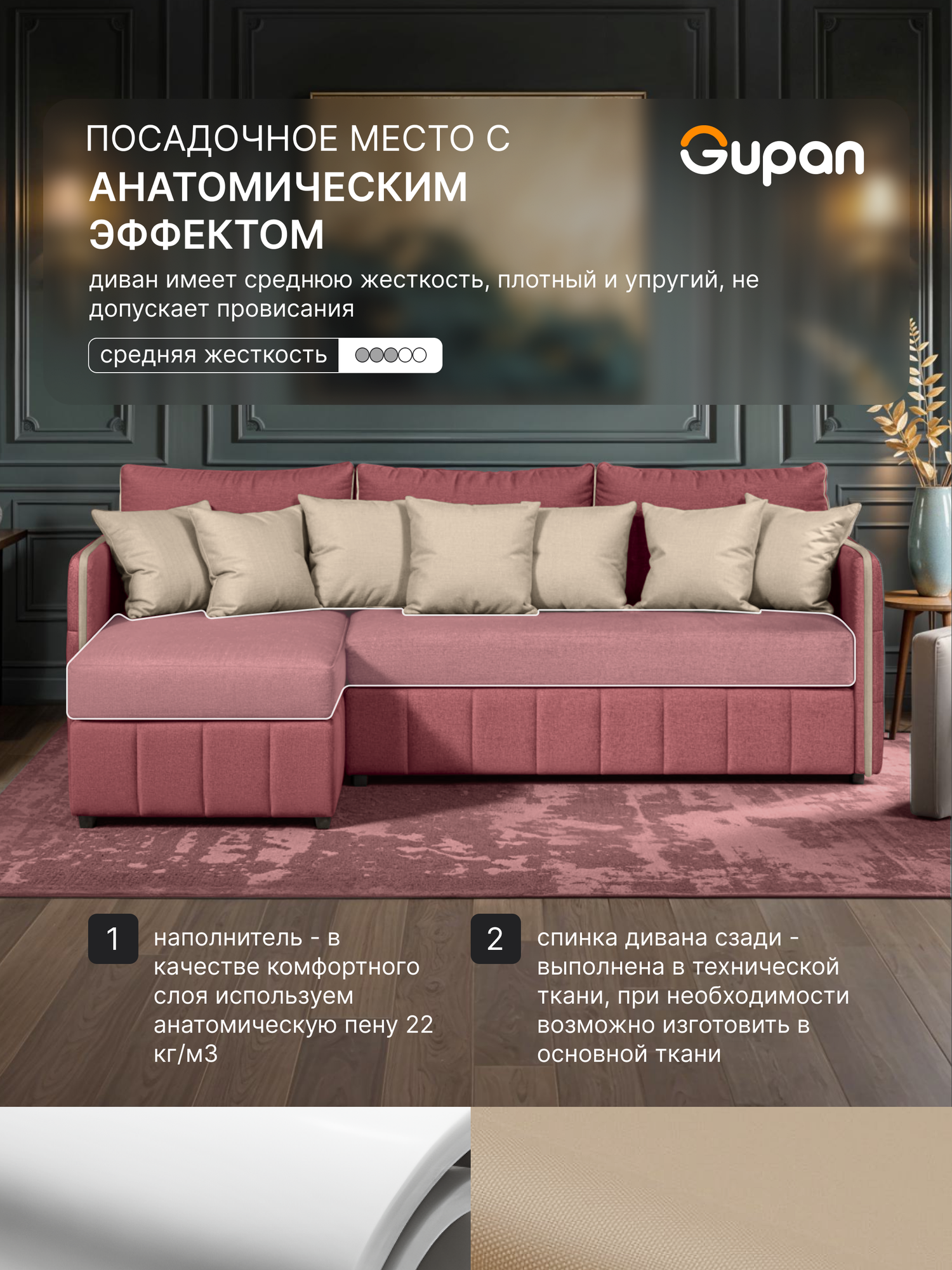 Отзывы на Диван угловой Gupan Граус Велюр Amigo Berry, раскладной, механизм дельфин, беспружинный, с ящиком для белья
