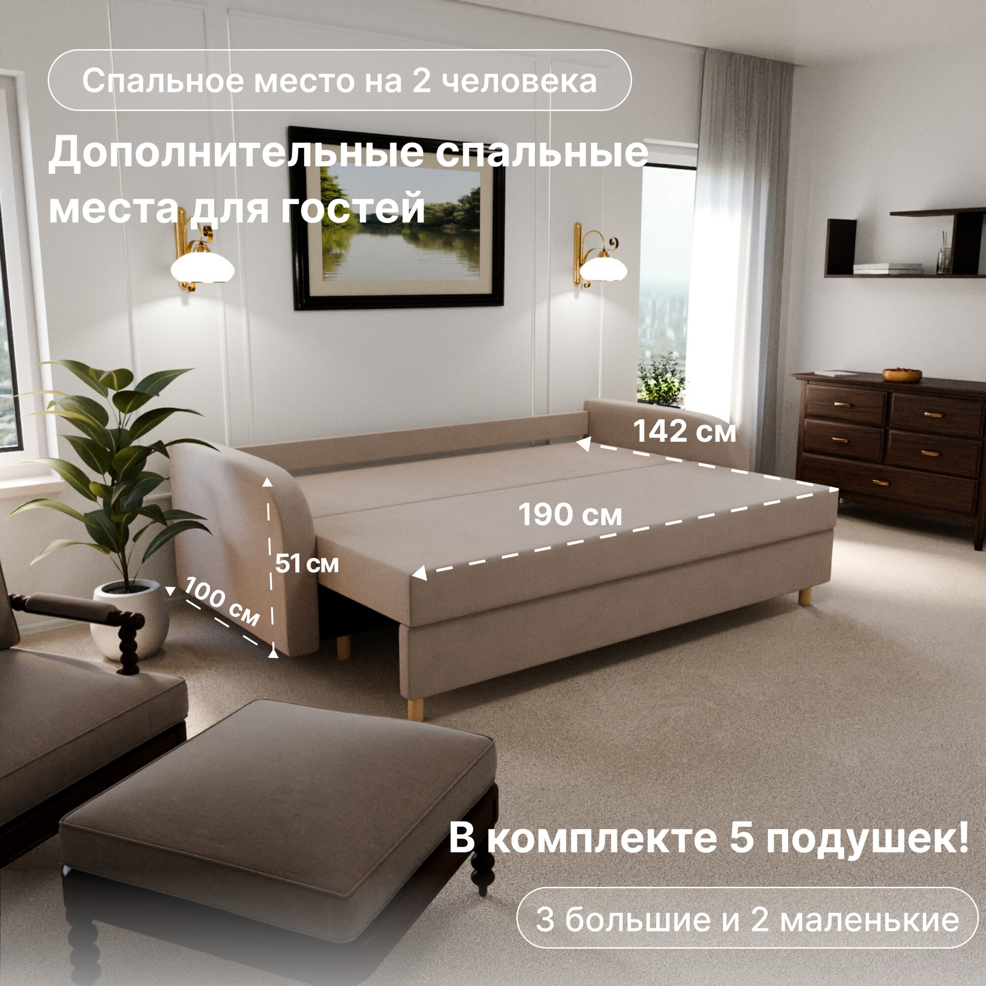 10 цен на Диван, диван-кровать, диван раскладной "Генри" ППУ, Велютта люкс 07, размеры 220х80х100, бежевый