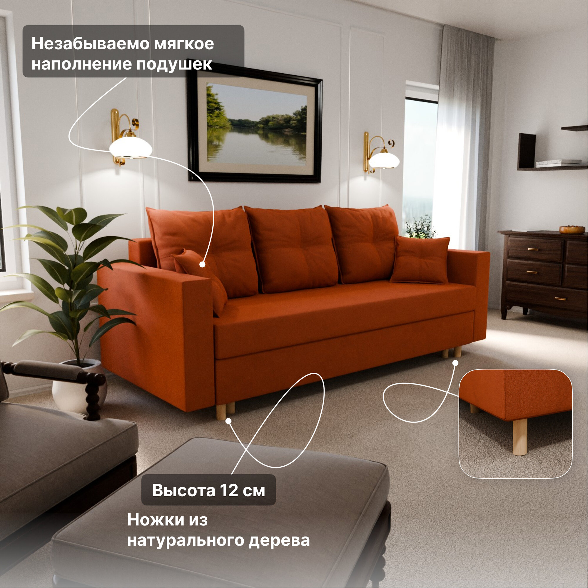 Отзывы на Диван раскладной, "Garmonia", ППУ, Велютта люкс 58 размеры 220х80х100, оранжевый