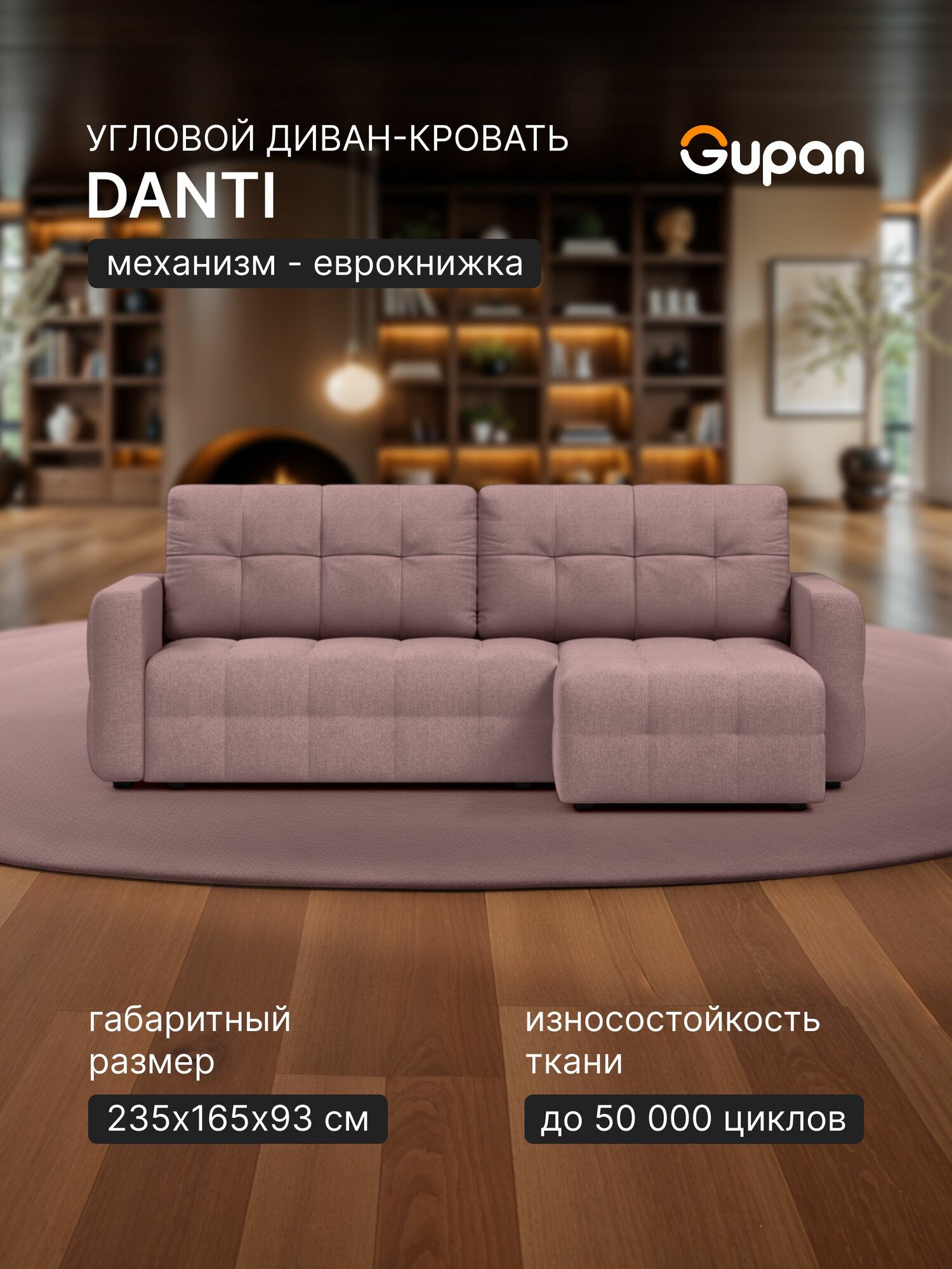 Диван угловой Gupan Данти Велюр Amigo Dimrose, раскладной, механизм еврокнижка, беспружинный, с ящиком для белья 41 440 ₽