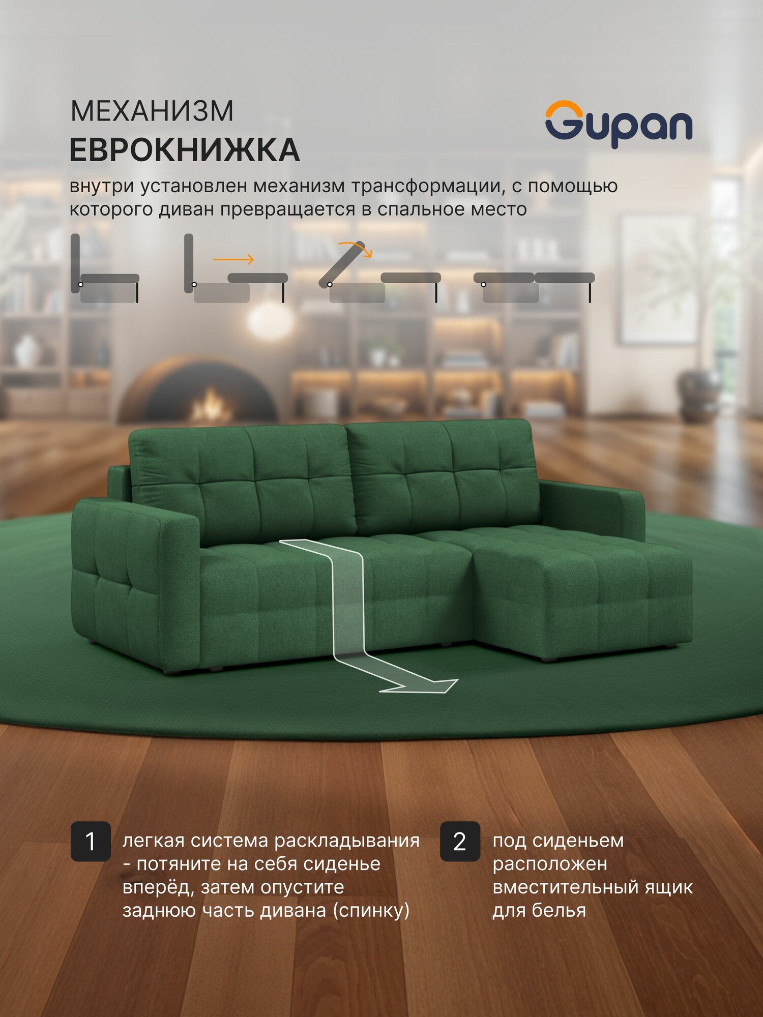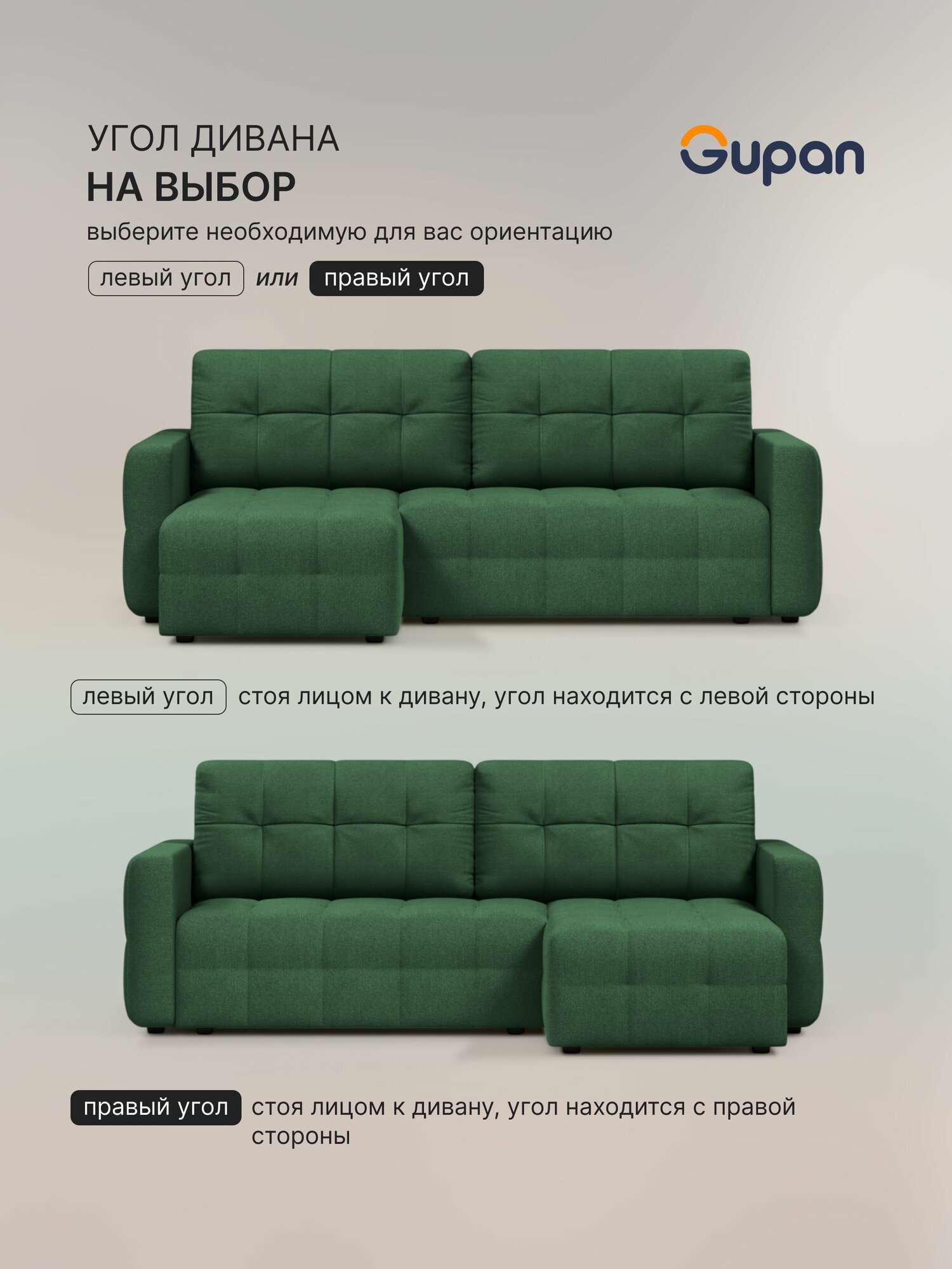 10 цен на Диван угловой Gupan Данти Велюр Amigo Green, раскладной, механизм еврокнижка, беспружинный, с ящиком для белья