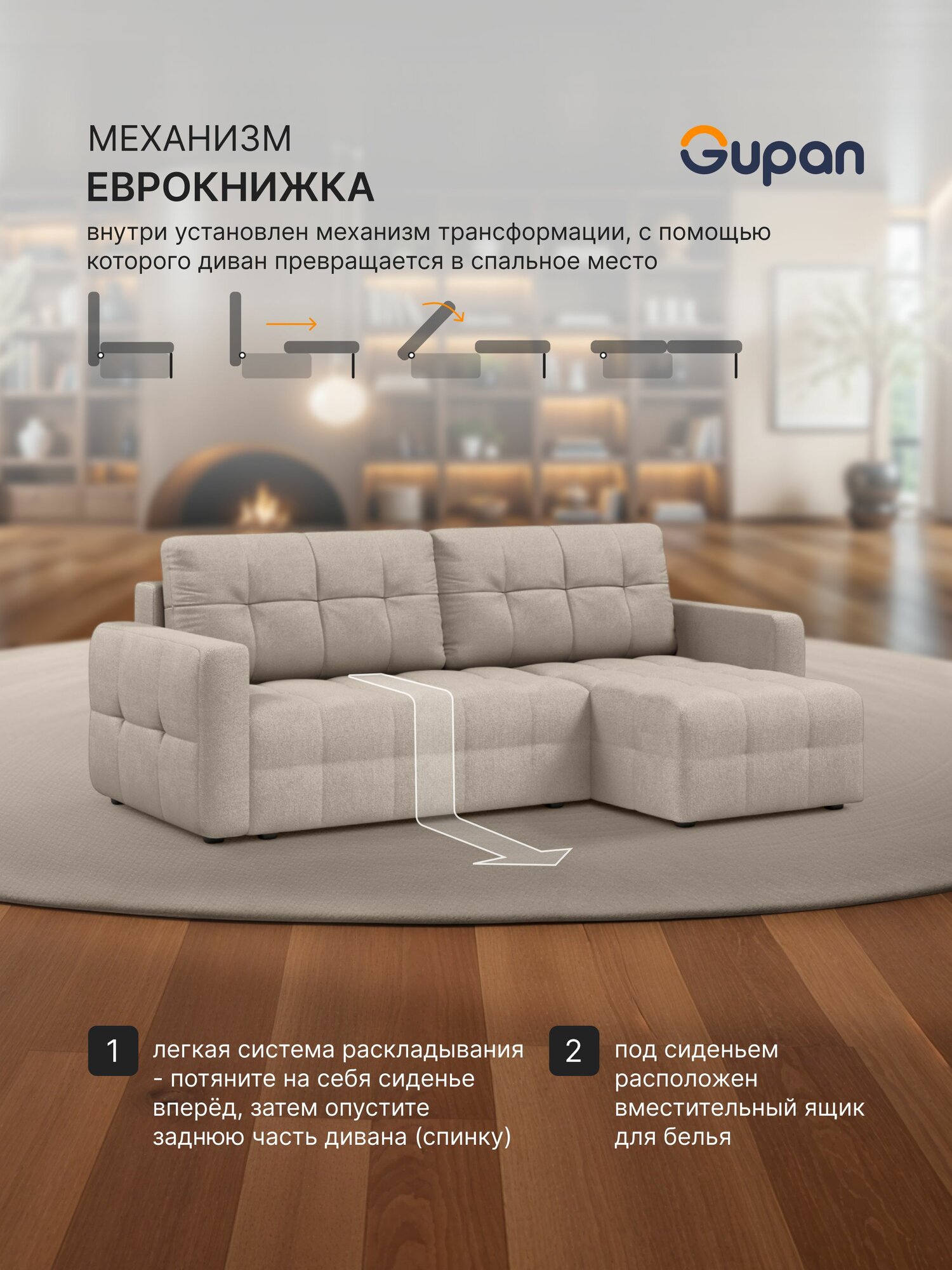 Отзывы на Диван угловой Gupan Данти Велюр Amigo Cream, раскладной, механизм еврокнижка, беспружинный, с ящиком для белья