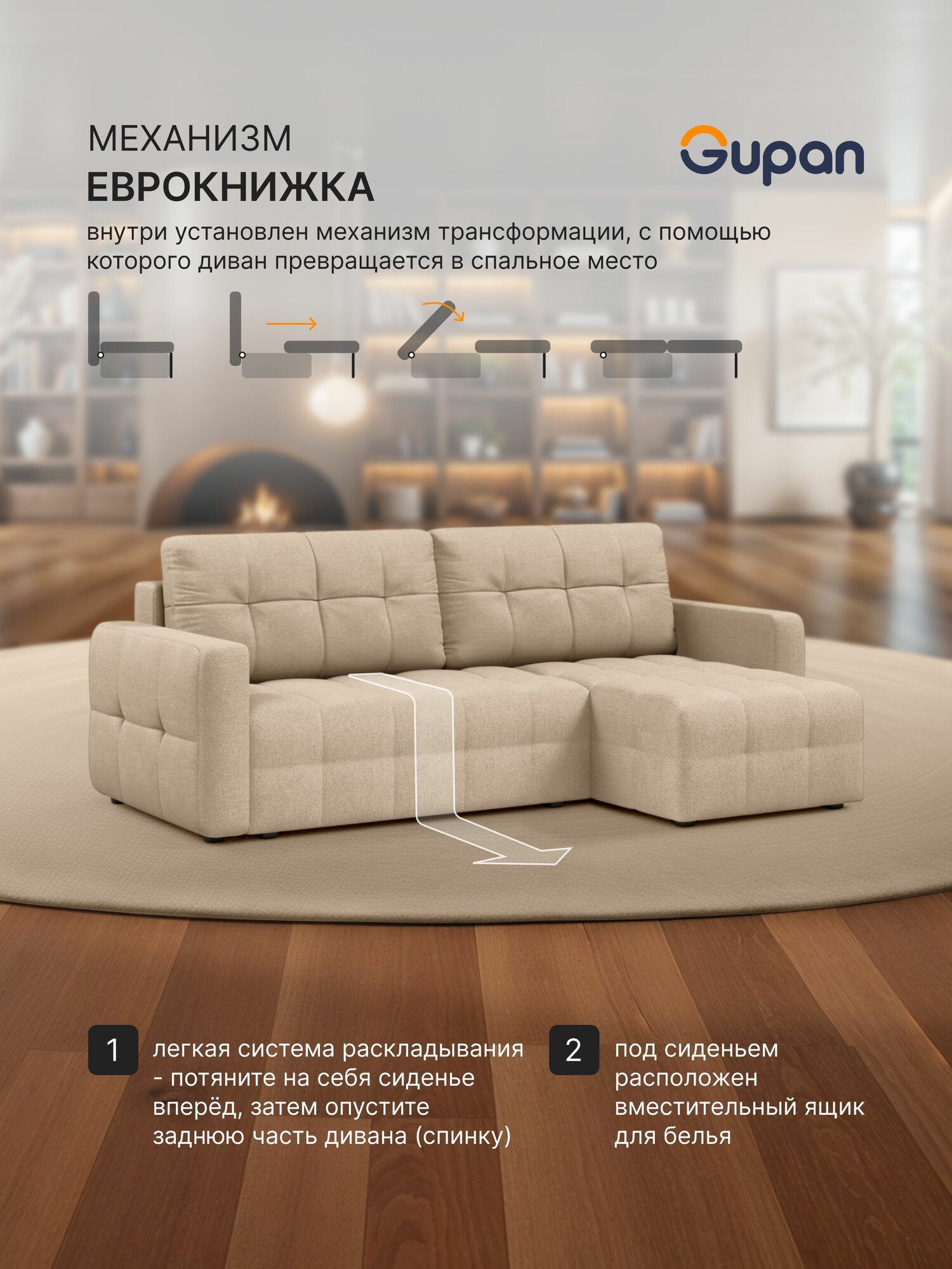 Отзывы на Диван угловой Gupan Данти Велюр Amigo Bone, раскладной, механизм еврокнижка, беспружинный, с ящиком для белья
