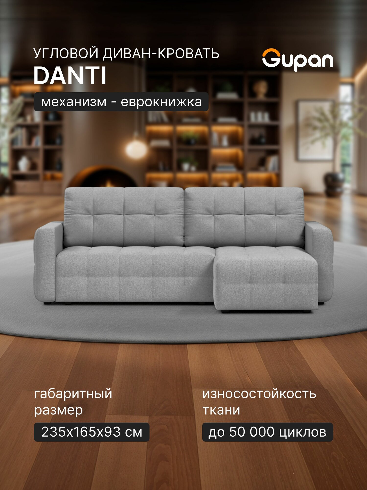Отзывы на Диван угловой Gupan Данти Велюр Amigo Ash, раскладной, механизм еврокнижка, беспружинный, с ящиком для белья