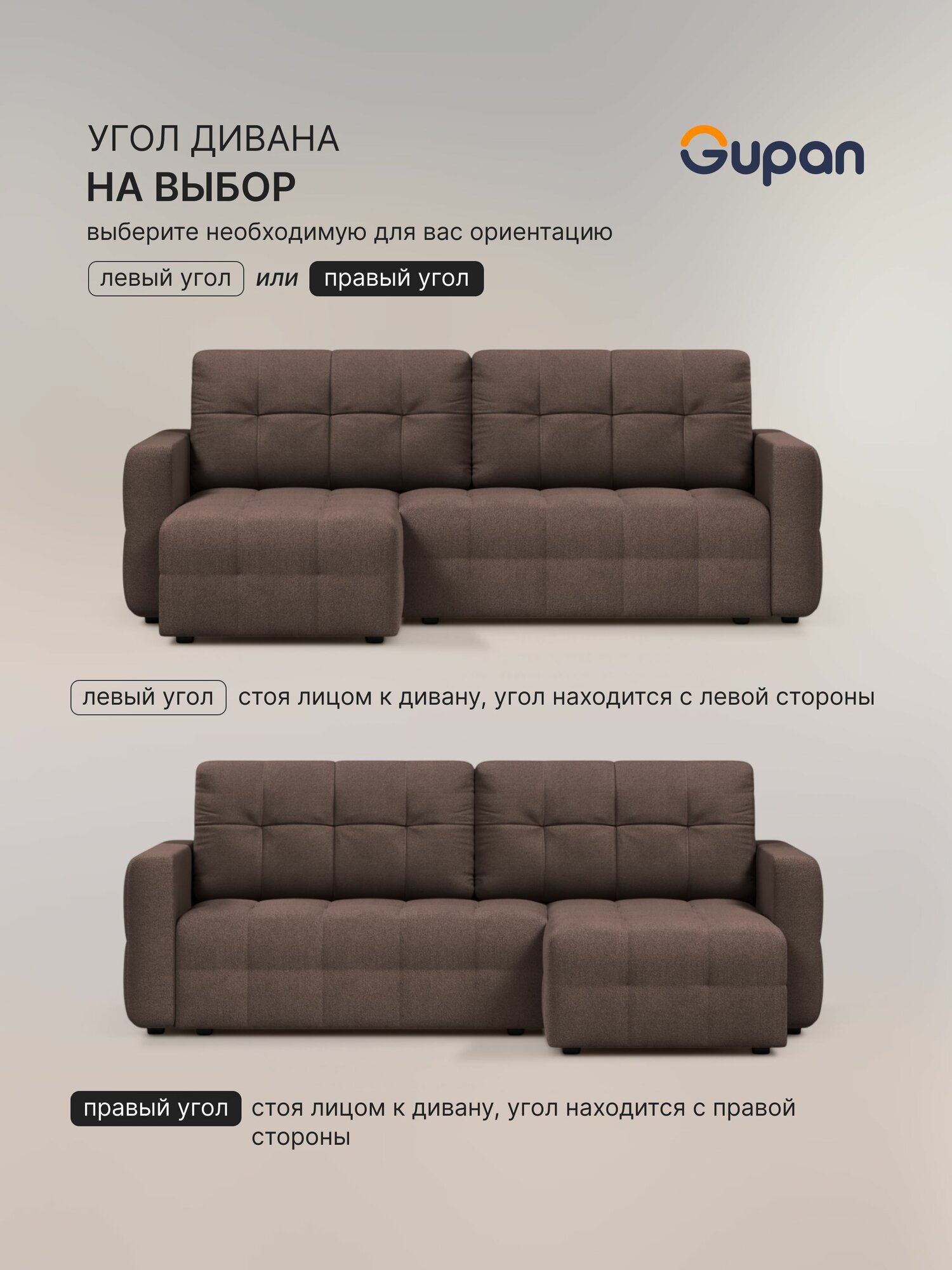 Отзывы на Диван угловой Gupan Данти Велюр Amigo Brown, раскладной, механизм еврокнижка, беспружинный, с ящиком для белья