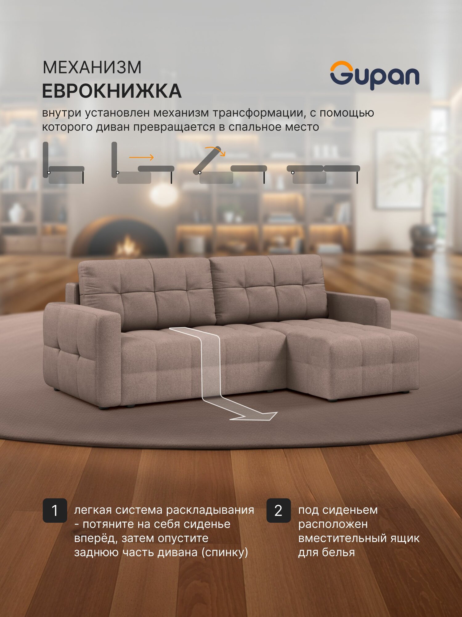 10 цен на Диван угловой Gupan Данти Велюр Amigo Latte, раскладной, механизм еврокнижка, беспружинный, с ящиком для белья