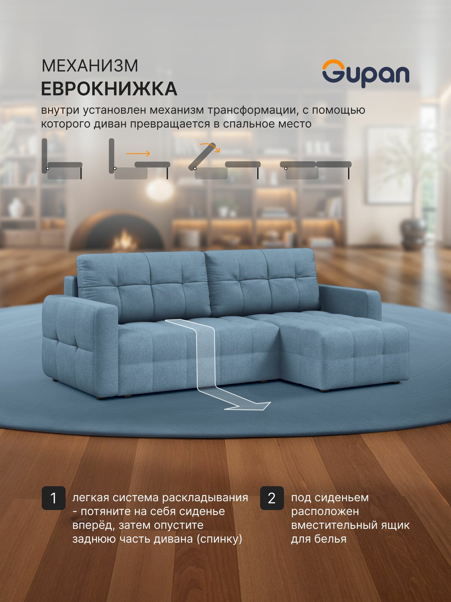 10 цен на Диван угловой Gupan Данти Велюр Amigo Blue, раскладной, механизм еврокнижка, беспружинный, с ящиком для белья