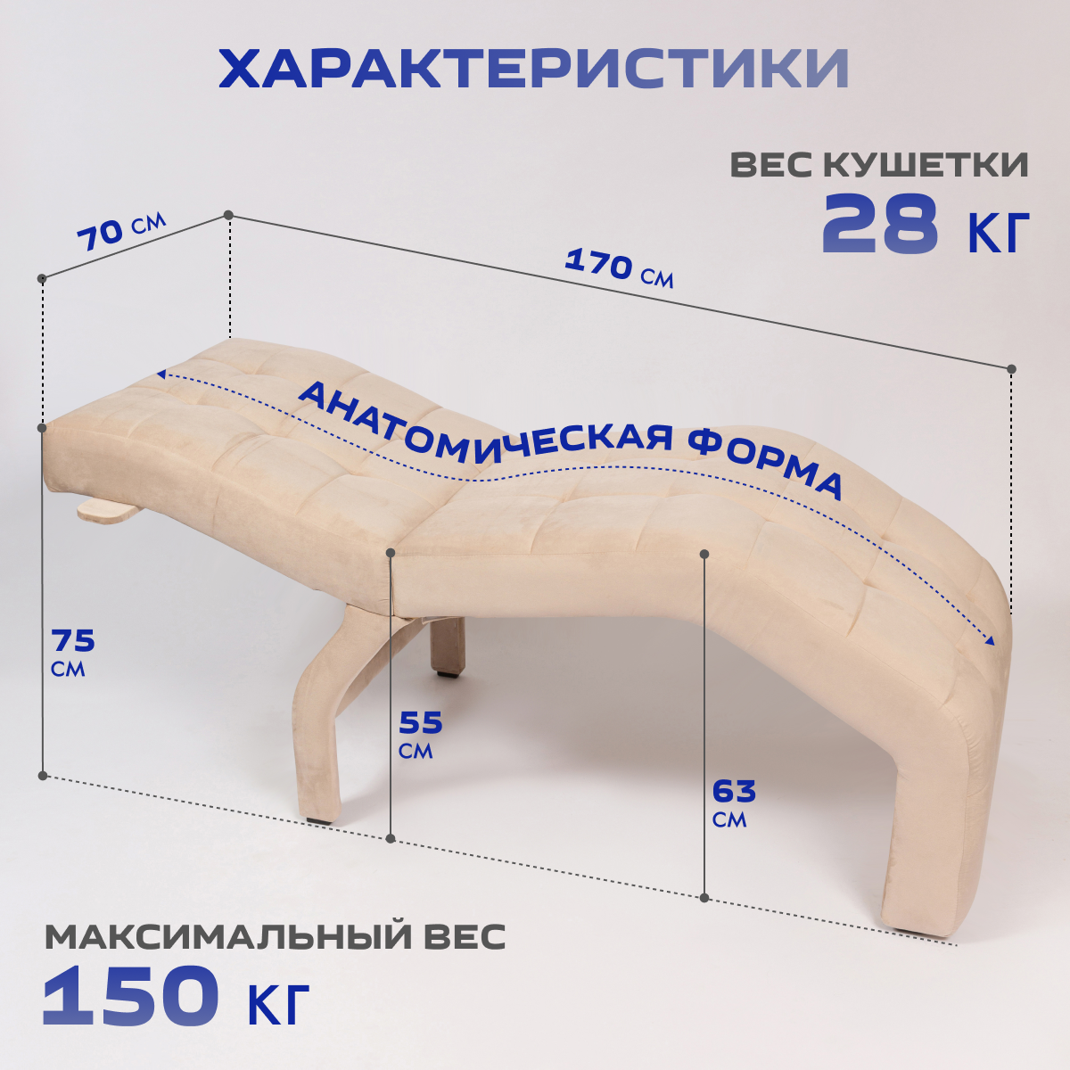 Анатомическая кушетка Квадрат для наращивания ресниц, деревянные ножки, бежевый информация: