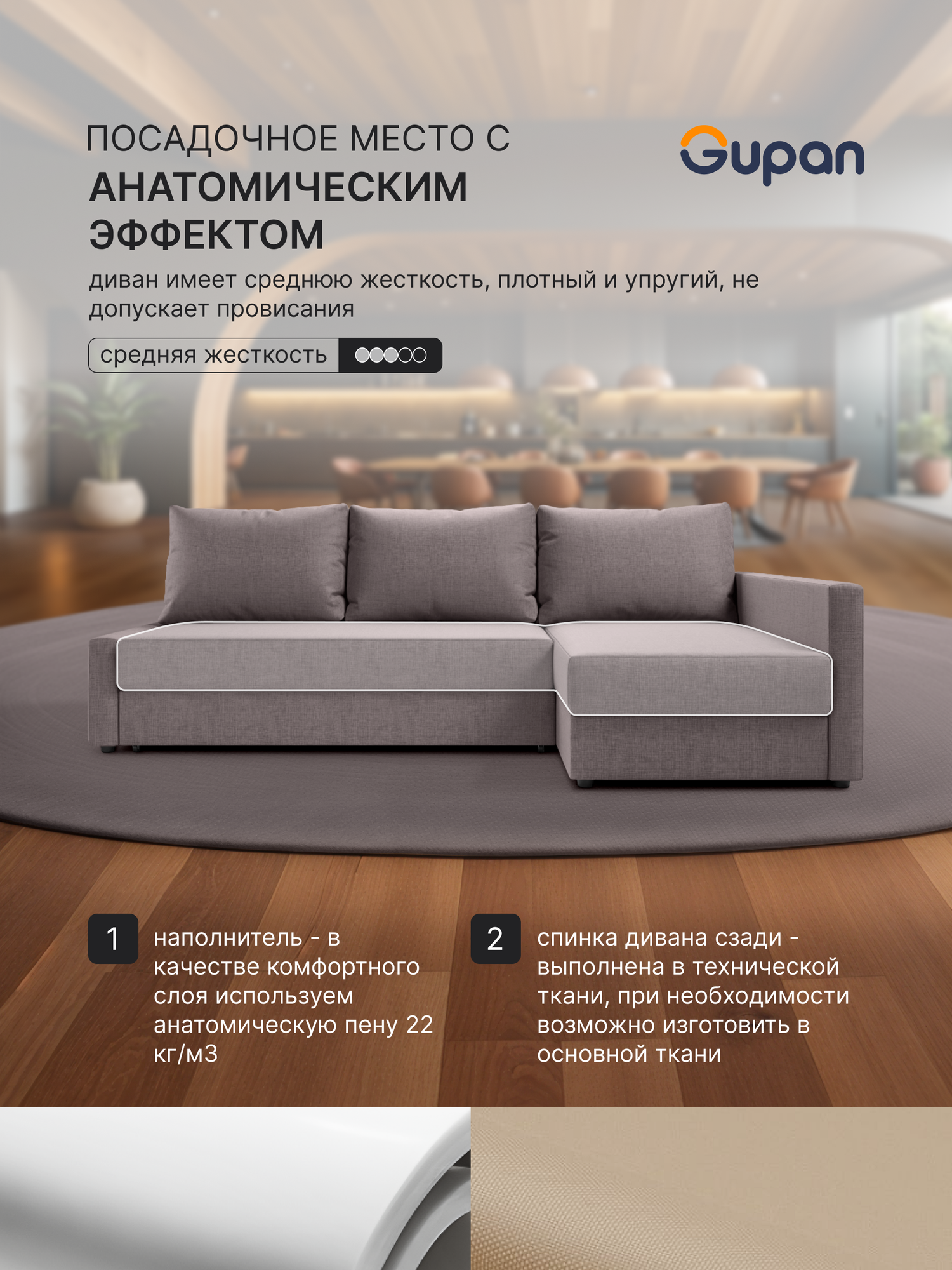 Отзывы на Диван угловой Gupan Фрисби Рогожка Savana Vision, раскладной, механизм дельфин, беспружинный, с ящиком для белья