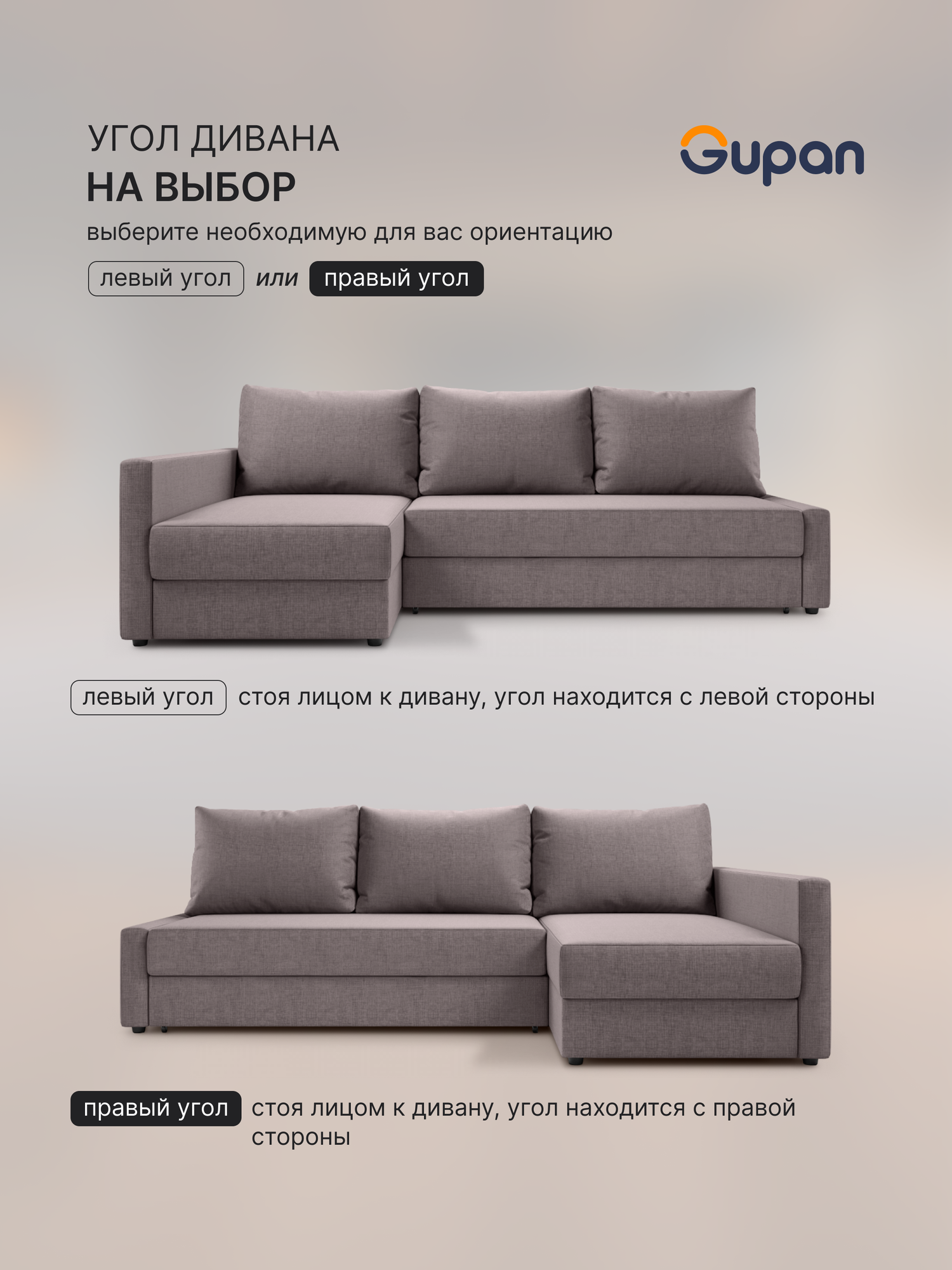 10 цен на Диван угловой Gupan Фрисби Рогожка Savana Vision, раскладной, механизм дельфин, беспружинный, с ящиком для белья