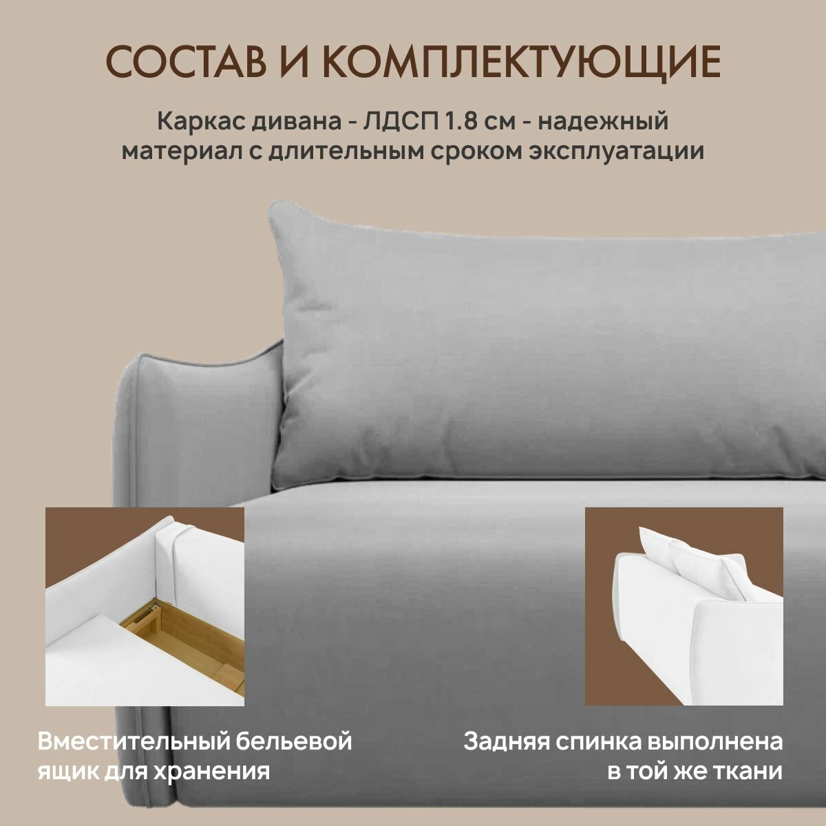 Диван прямой Nook раскладной Еврокнижка 216х105 Велюр серый Dakota 24 информация: