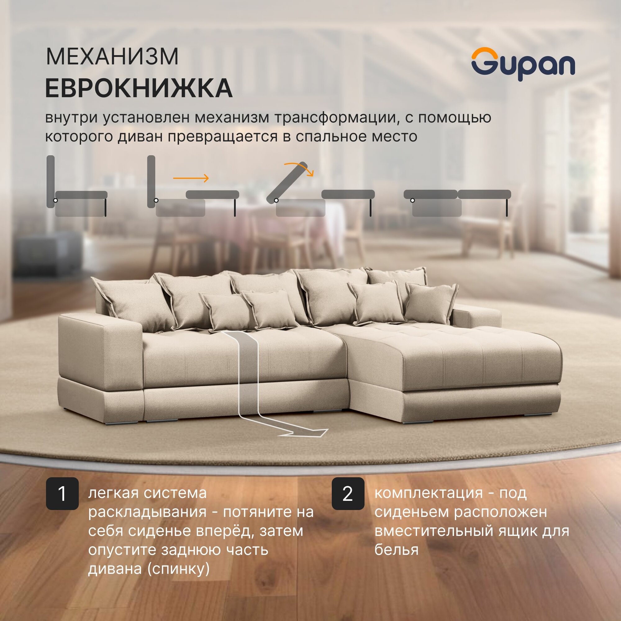 Отзывы на Диван угловой Gupan Olis Велюр Amigo Bone, раскладной, механизм еврокнижка, беспружинный, с ящиком для белья