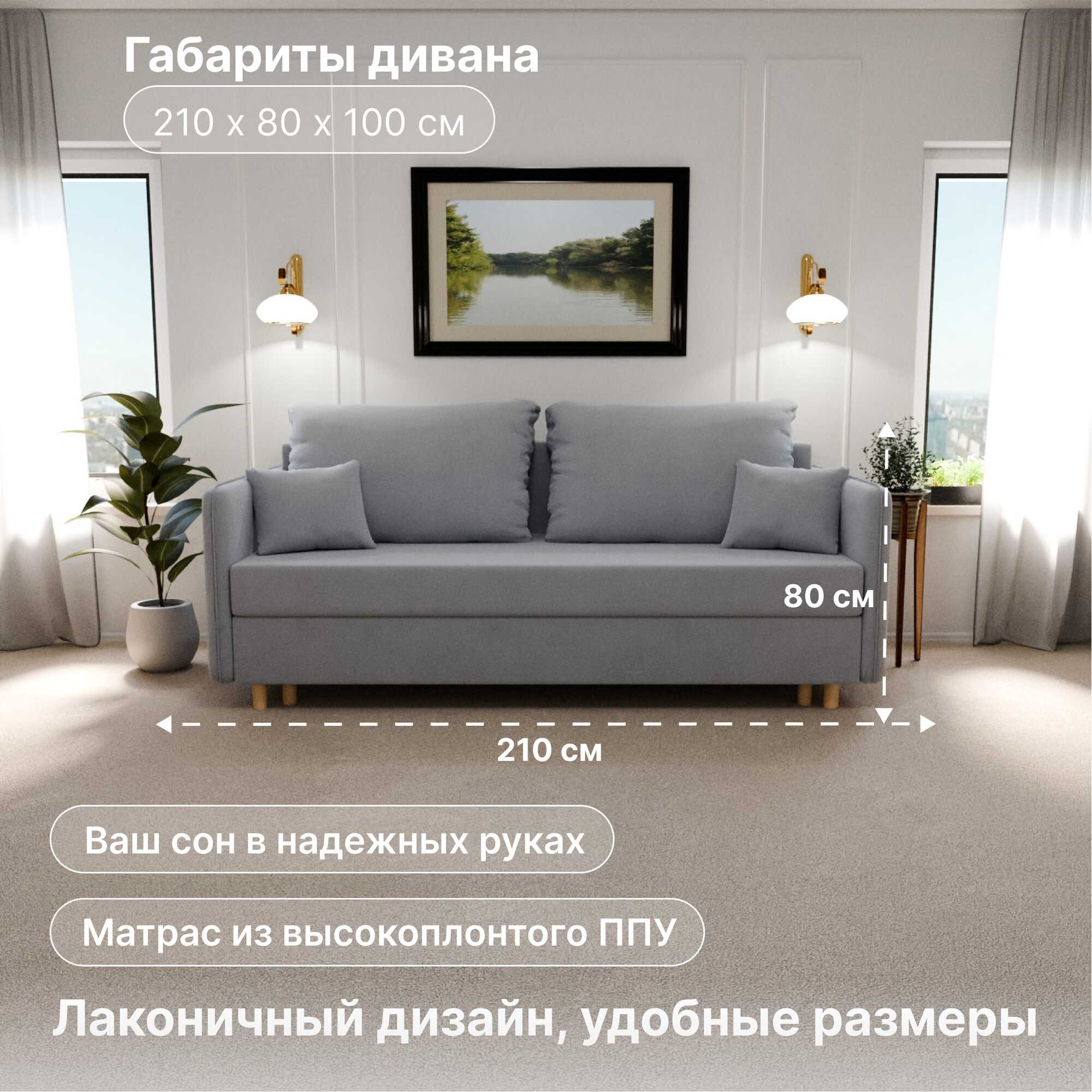 Отзывы на Диван раскладной, "Comforta", НПБ, Велютта люкс 50 размеры 210х80х100, светло-серый