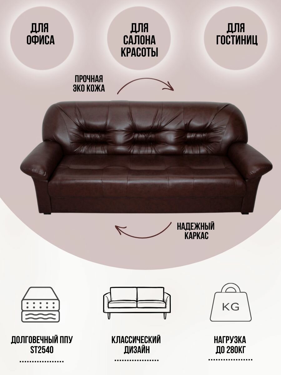 Офисный диван Марсель (Честер) Коричневая экокожа 3-х местный, 188х88х87 см информация: