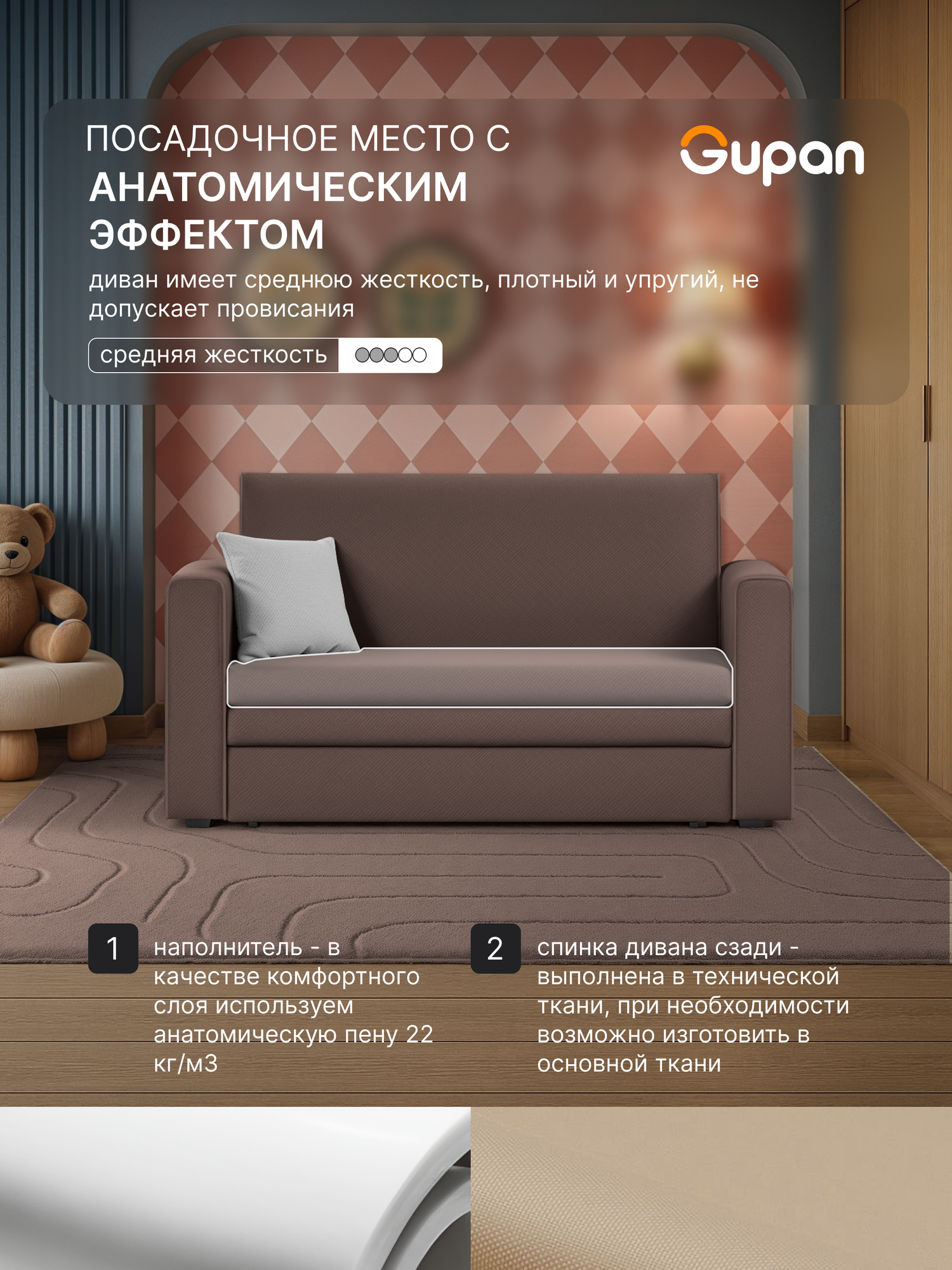 Диван кровать Gupan Санта Хит Велюр Amigo Brown, раскладной, механизм выкатной, беспружинный информация: