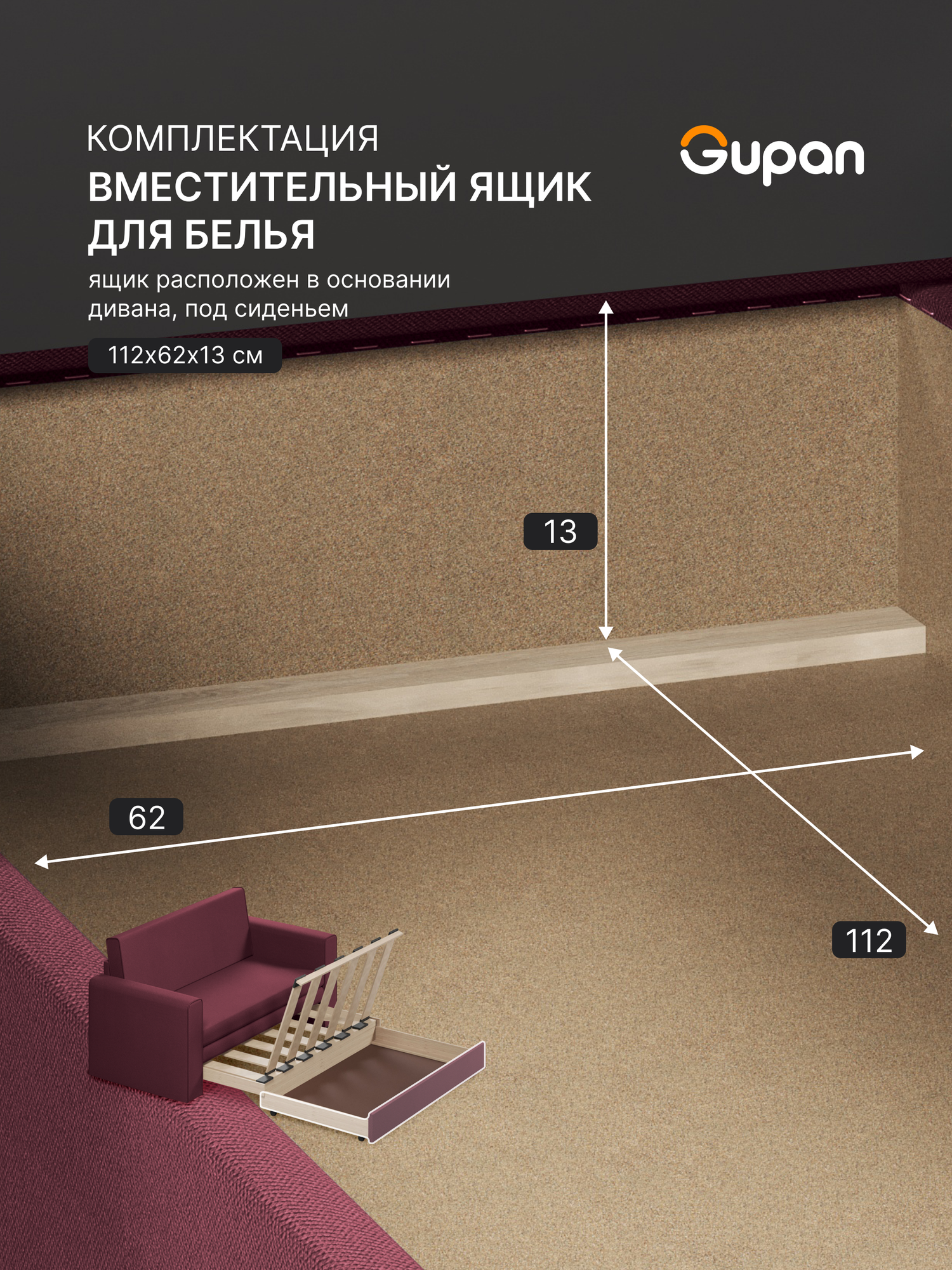 Диван кровать Gupan Болеро Велюр Amigo Bone, раскладной, механизм аккордеон, беспружинный, с ящиком для белья