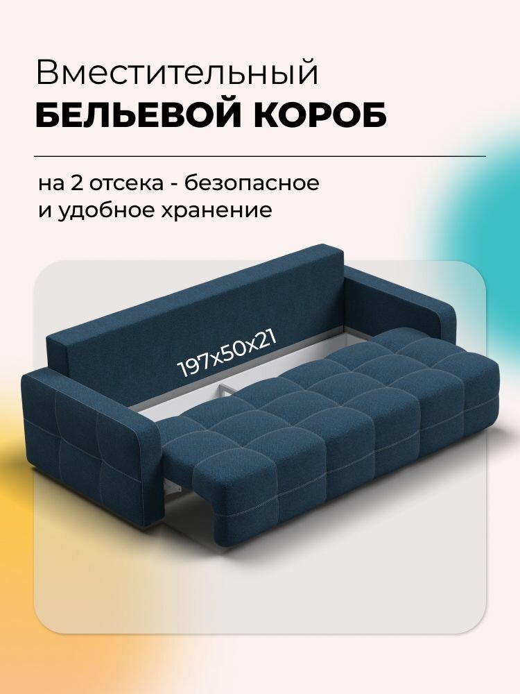 Диван-кровать Dandy 2.0, прямой, рогожка Malmo синий, 235x105x93 см информация: