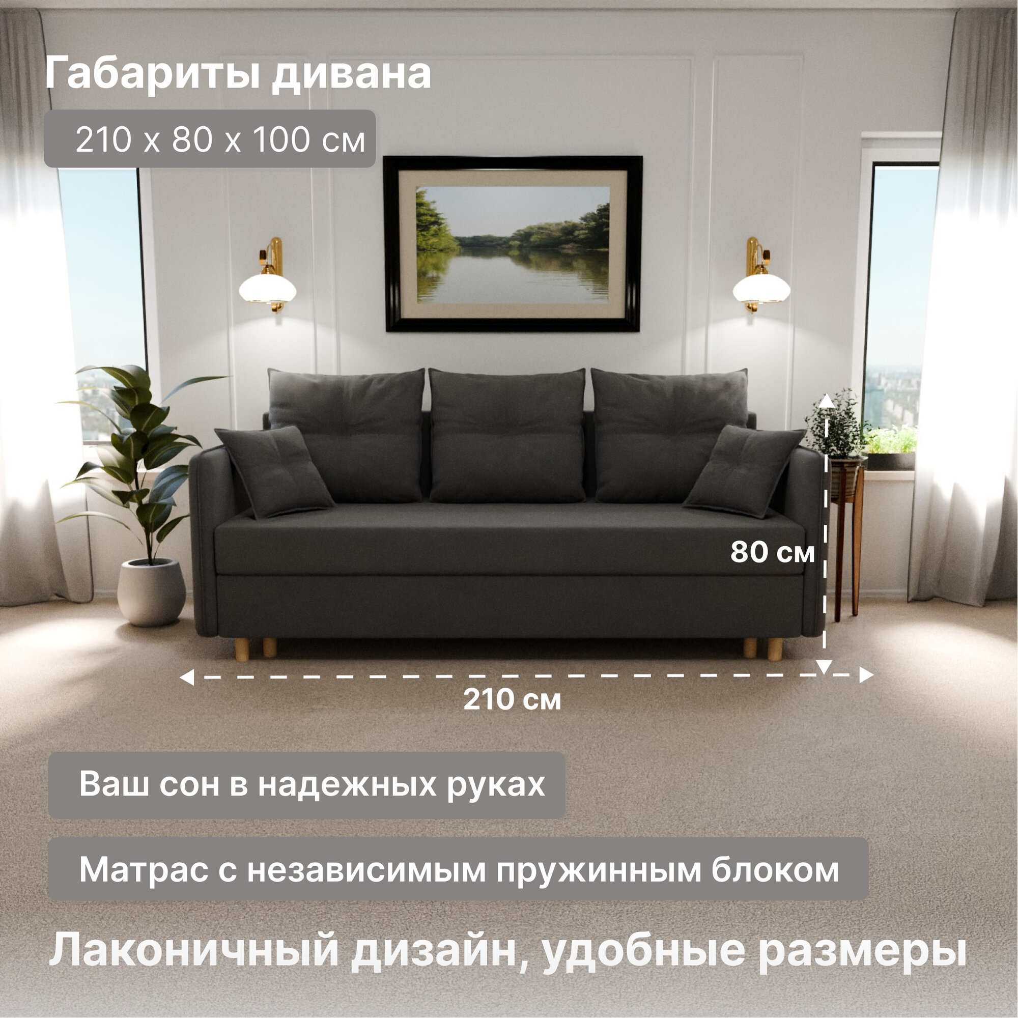 Диван раскладной, "Lotos", НПБ, Велютта люкс 99 размеры 210х80х100, черный 40 000 ₽