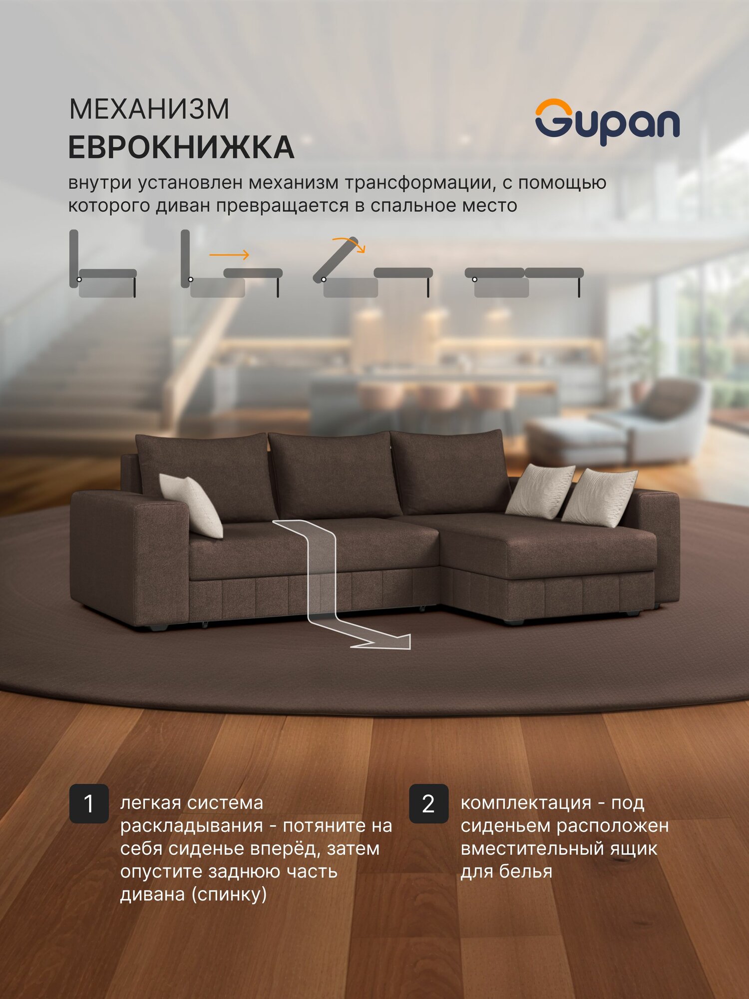 Отзывы на Диван угловой Gupan Майами Велюр Amigo Coffee, раскладной, механизм еврокнижка, беспружинный, с ящиком для белья