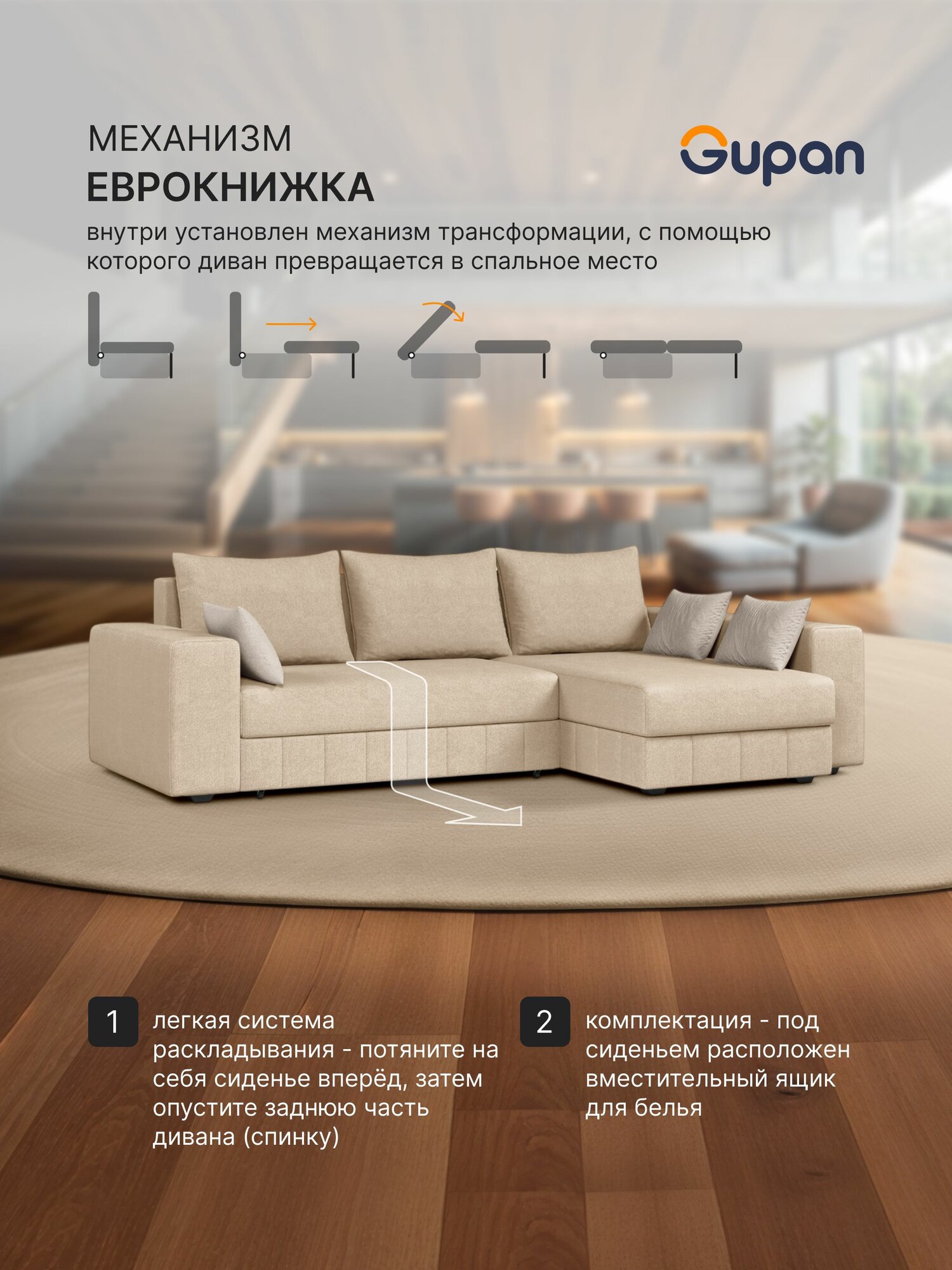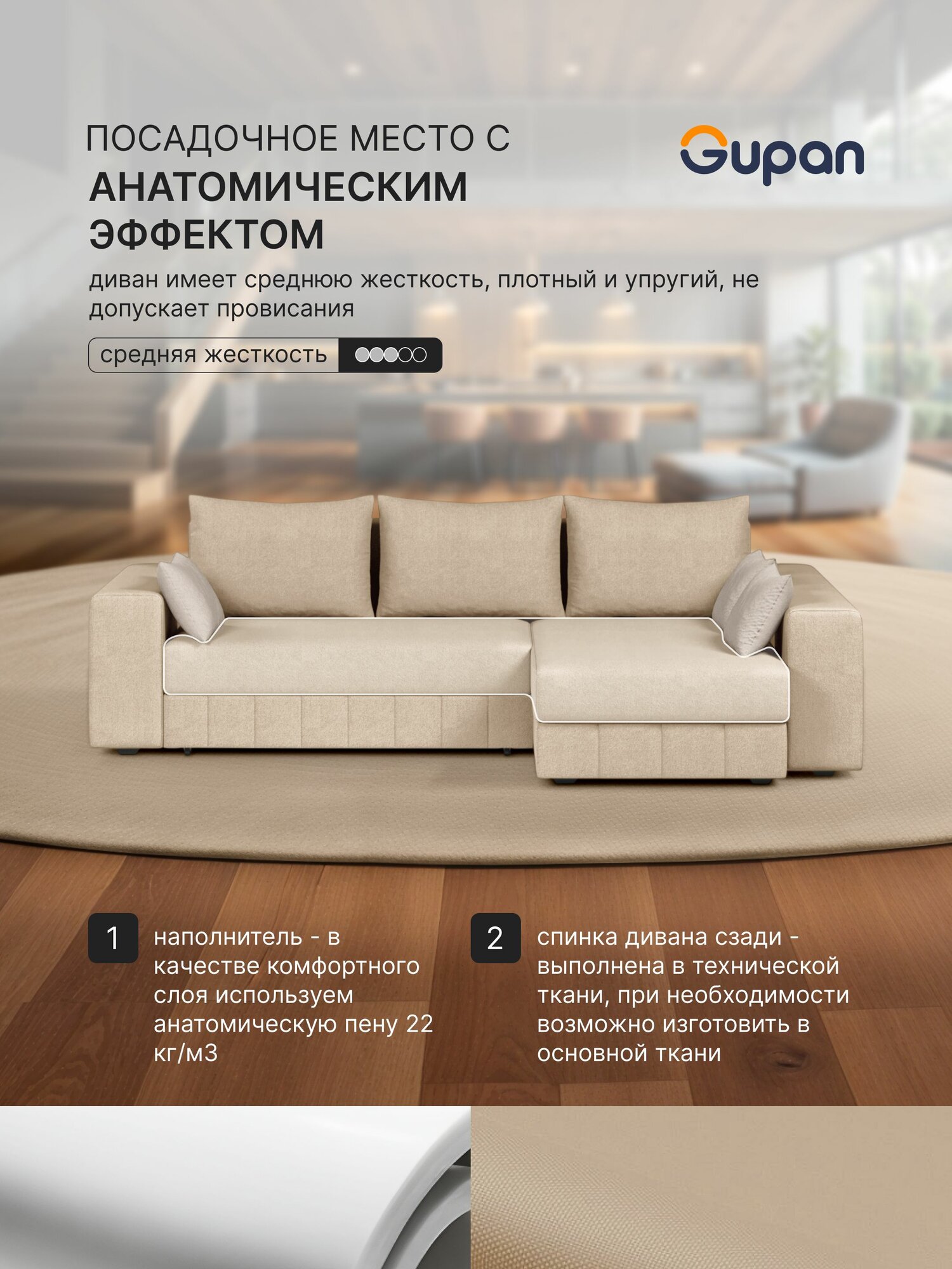 Отзывы на Диван угловой Gupan Майами Велюр Amigo Bone, раскладной, механизм еврокнижка, беспружинный, с ящиком для белья