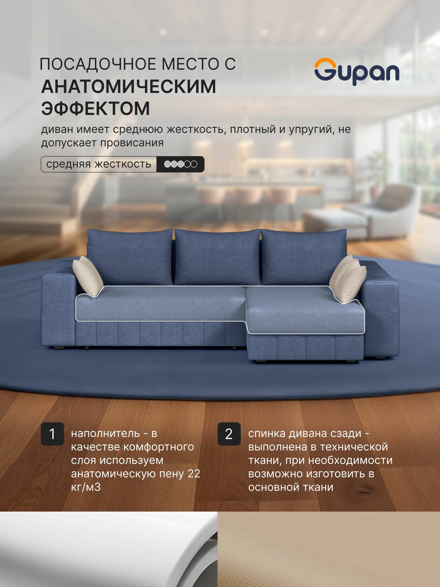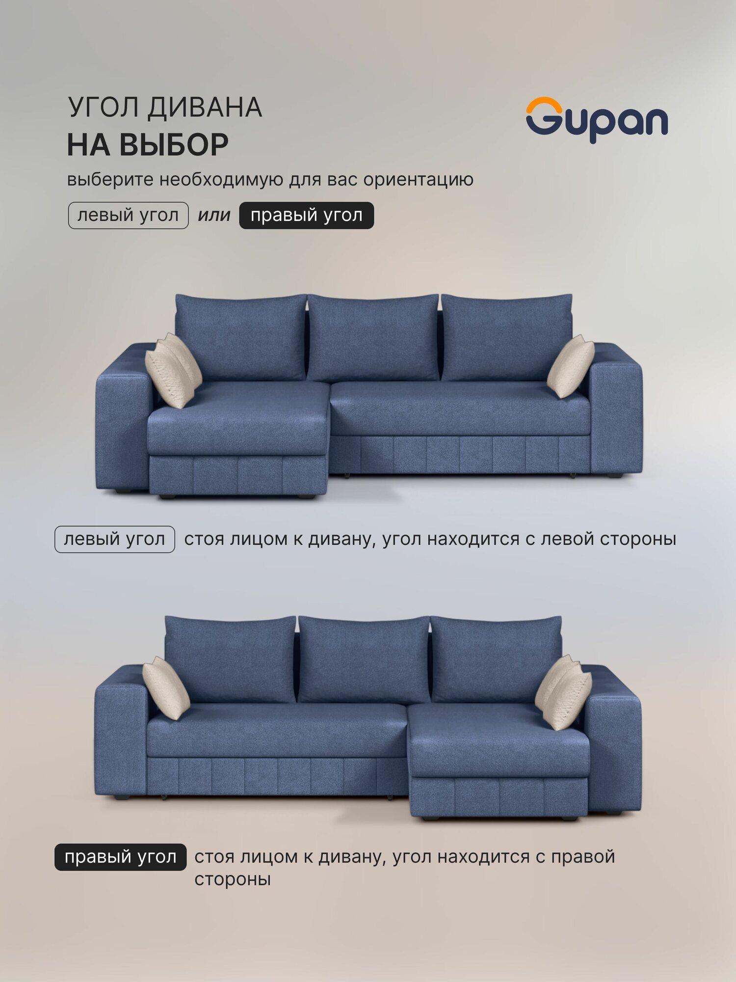 Отзывы на Диван угловой Gupan Майами Велюр Amigo Navy, раскладной, механизм еврокнижка, беспружинный, с ящиком для белья