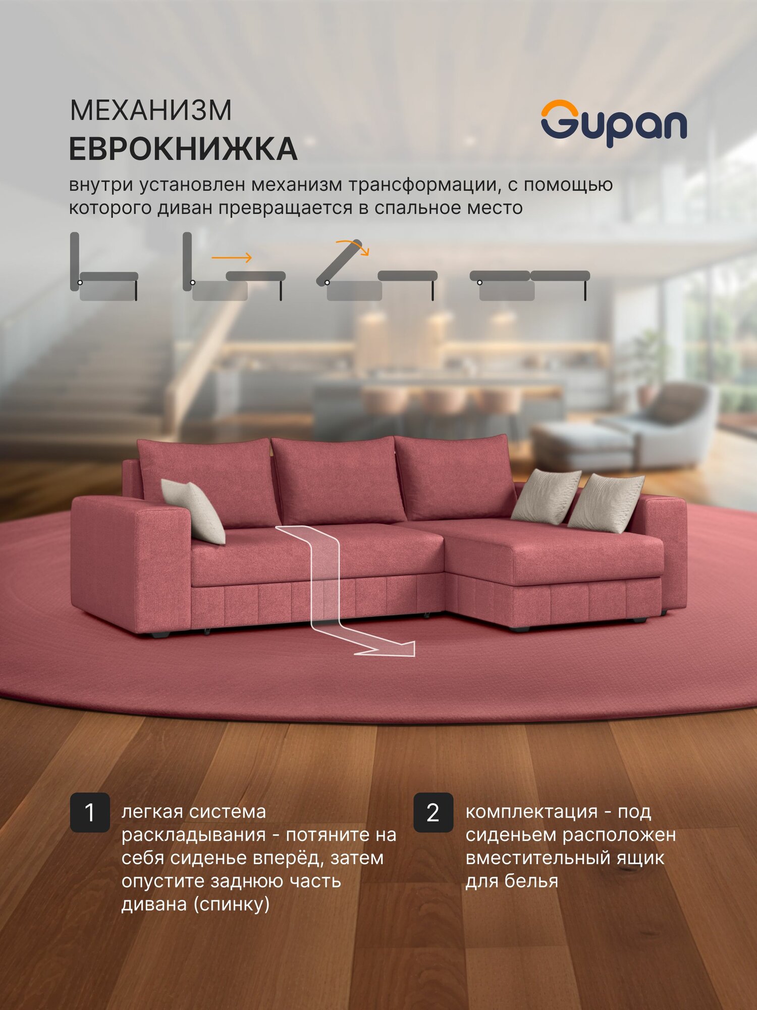 Отзывы на Диван угловой Gupan Майами Велюр Amigo Berry, раскладной, механизм еврокнижка, беспружинный, с ящиком для белья