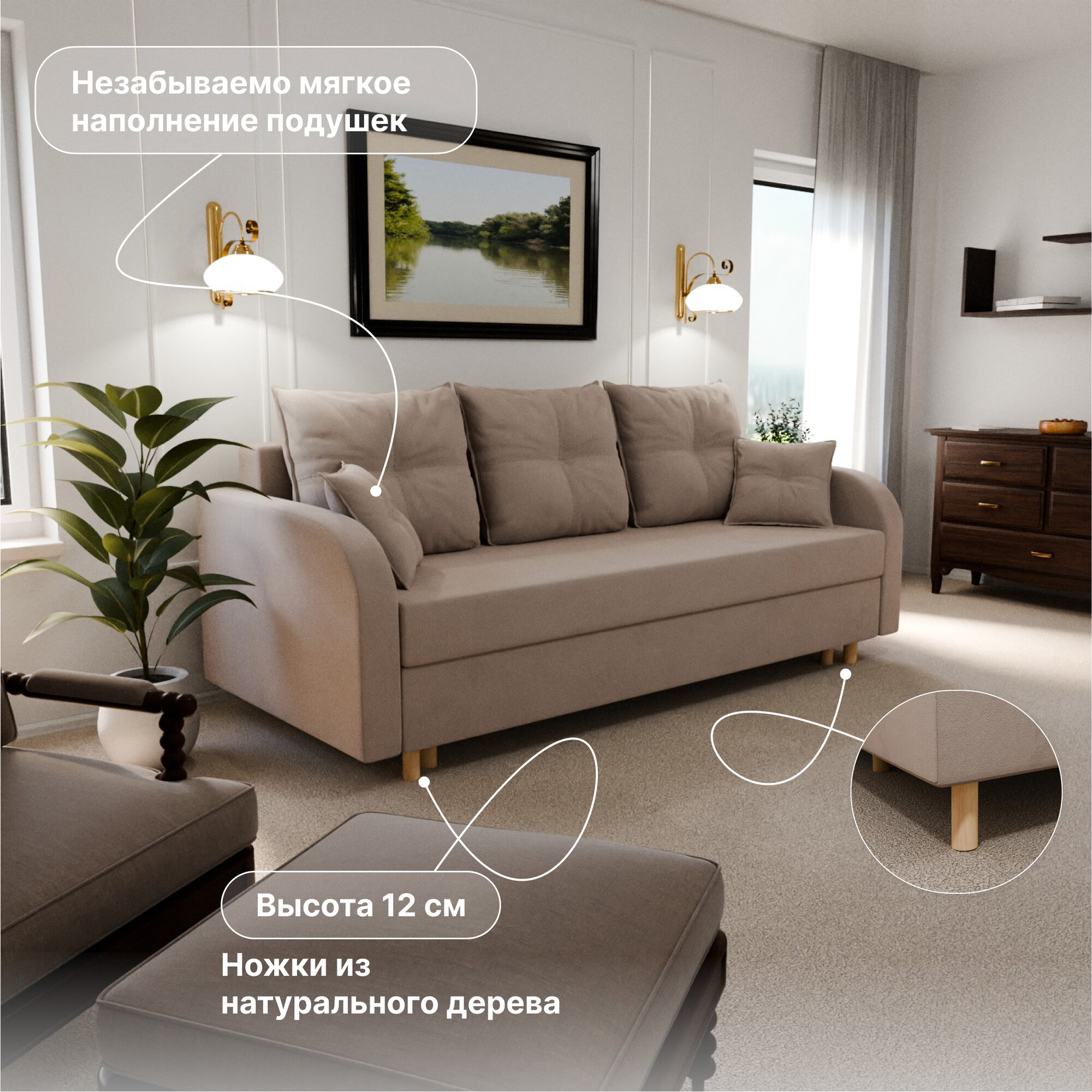 10 цен на Диван раскладной, "Genri", НПБ, Велютта люкс 07 размеры 220х80х100, бежевый