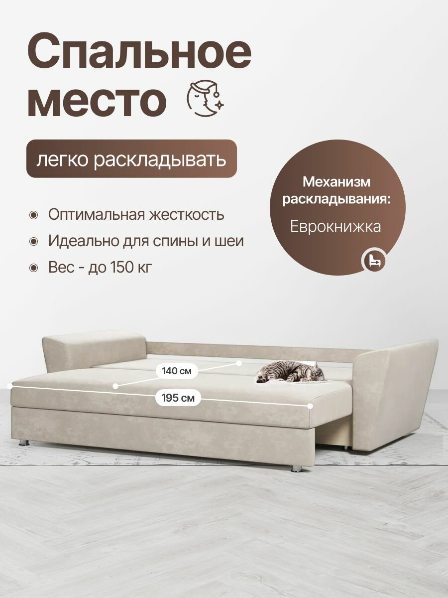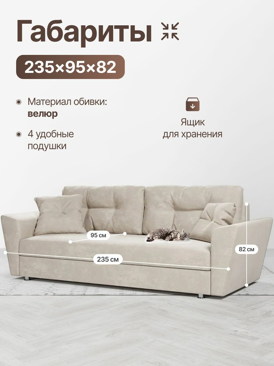 Диван кровать раскладной, Амстердам, еврокнижка, велюр, бежевый, Кабрио информация: