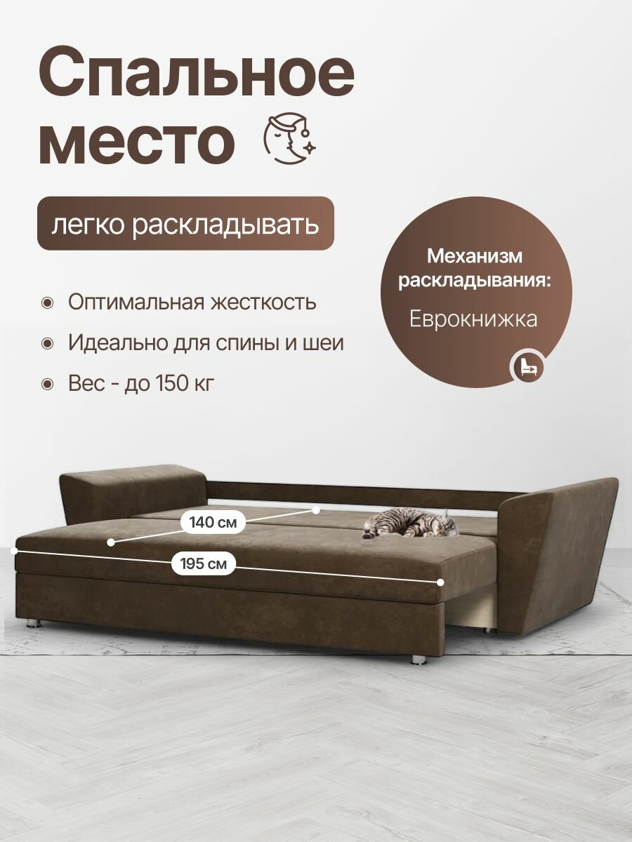 Диван кровать раскладной, прямой, Амстердам, еврокнижка, велюр, Кабрио, коричневый информация: