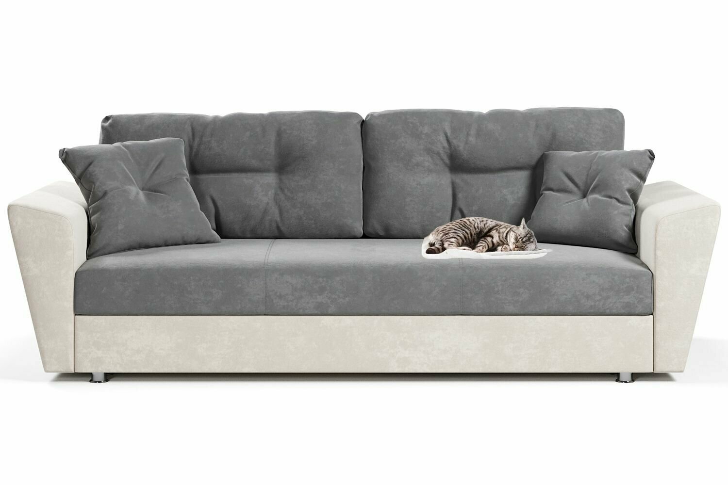 Диван прямой раскладной Амстердам М еврокнижка, серый и бежевый велюр, подушки серые 25 940 ₽