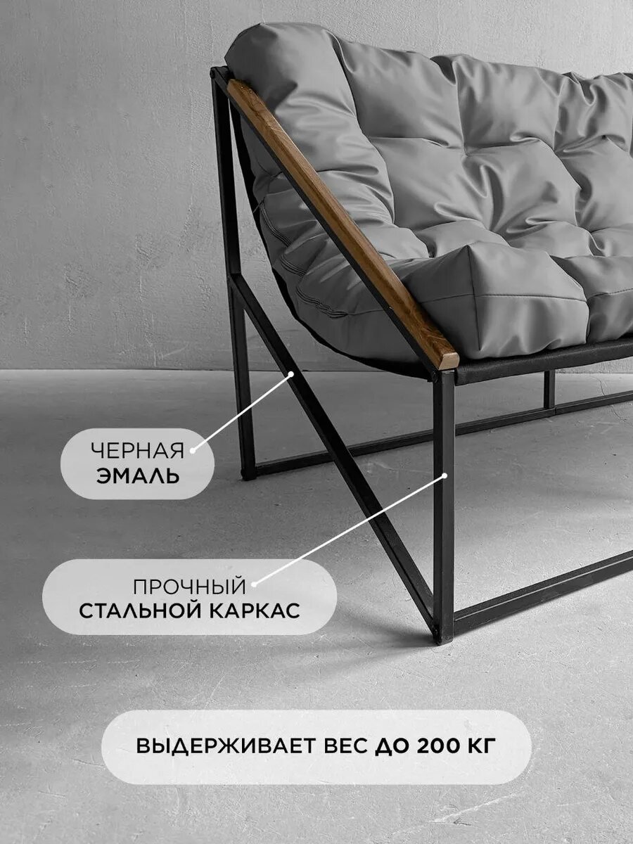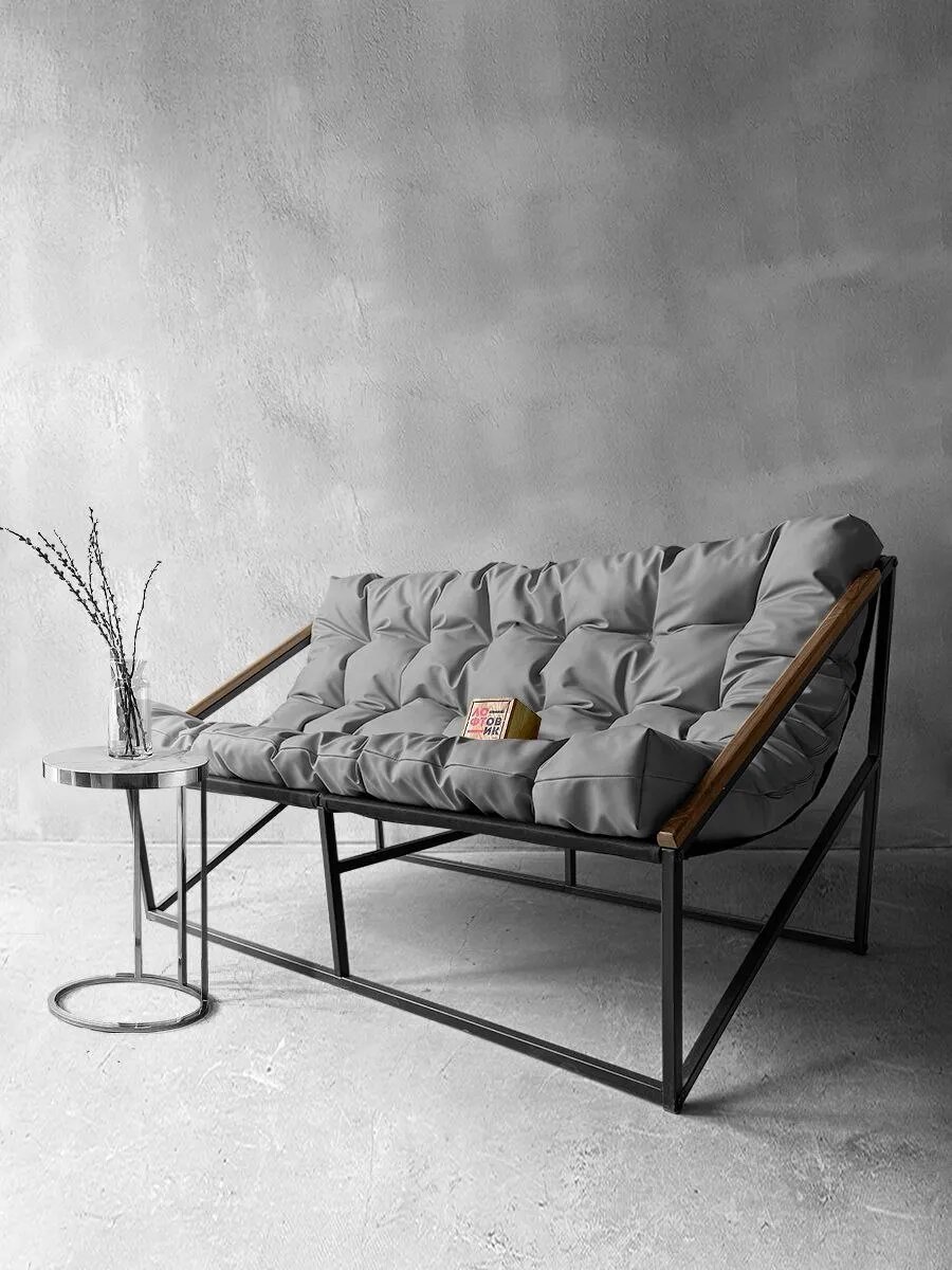 Диван мягкий удобный для отдыха, уличный, на балкон, на веранду, в стиле лофт, минимализм, Лофтовик Слэш ++ кожзам серый информация: