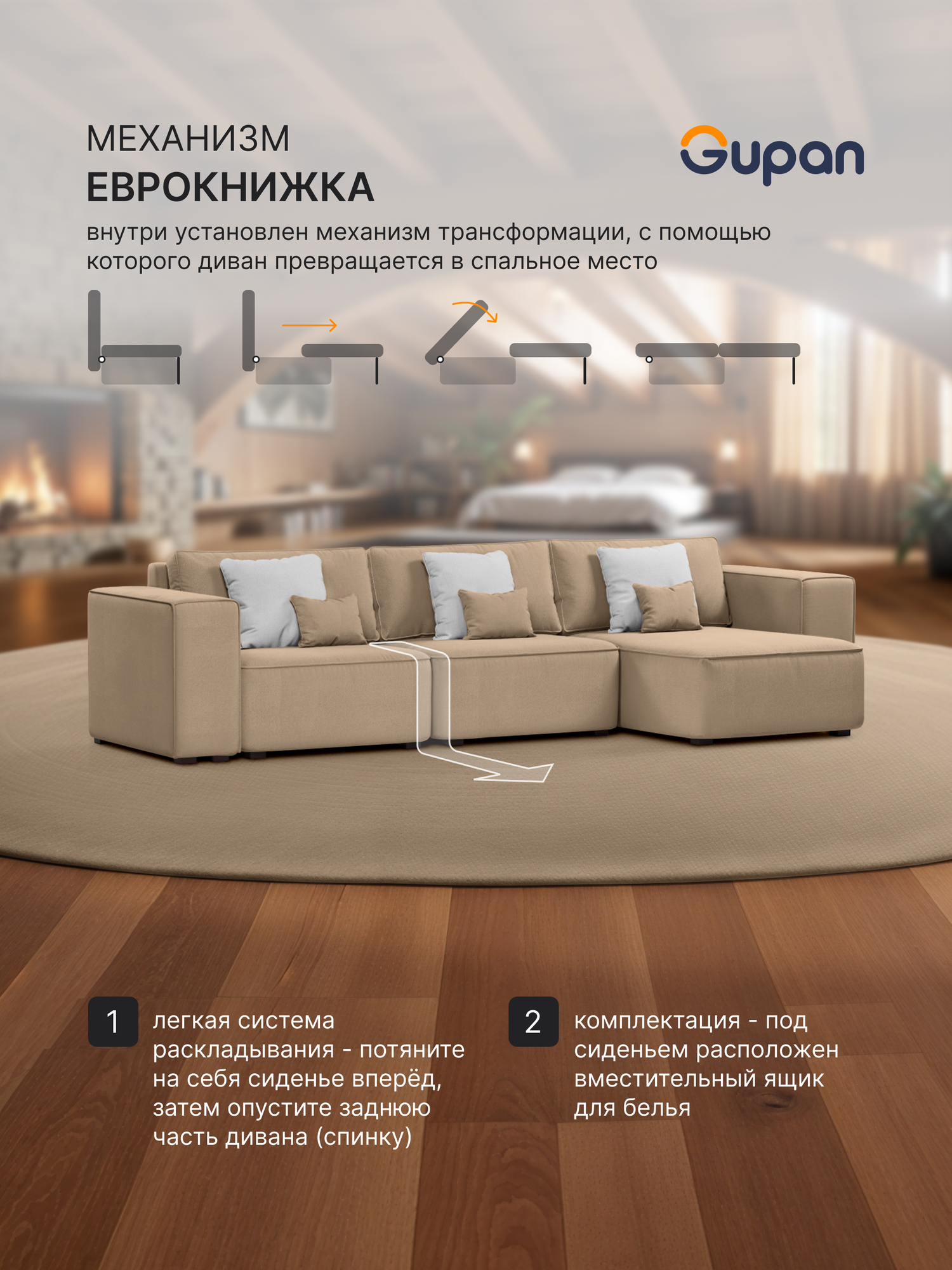 0 отзывов, средняя оценка 0. Чтобы купить «Диван угловой Gupan Фабио / Лофт Велюр Amigo Beige, раскладной, механизм еврокнижка, беспружинный, с ящиком для белья» по лучшей цене мы сканируем авито, алиэкспресс, маркет, озон, савеловский, плеер, горбушку, беру, официальные сайты и находим минимальную. Администрация не несет ответсвенность актуальность цен на Диван угловой Gupan Фабио / Лофт Велюр Amigo Beige, раскладной, механизм еврокнижка, беспружинный, с ящиком для белья, более подробно узнавайте на сайте магазина.