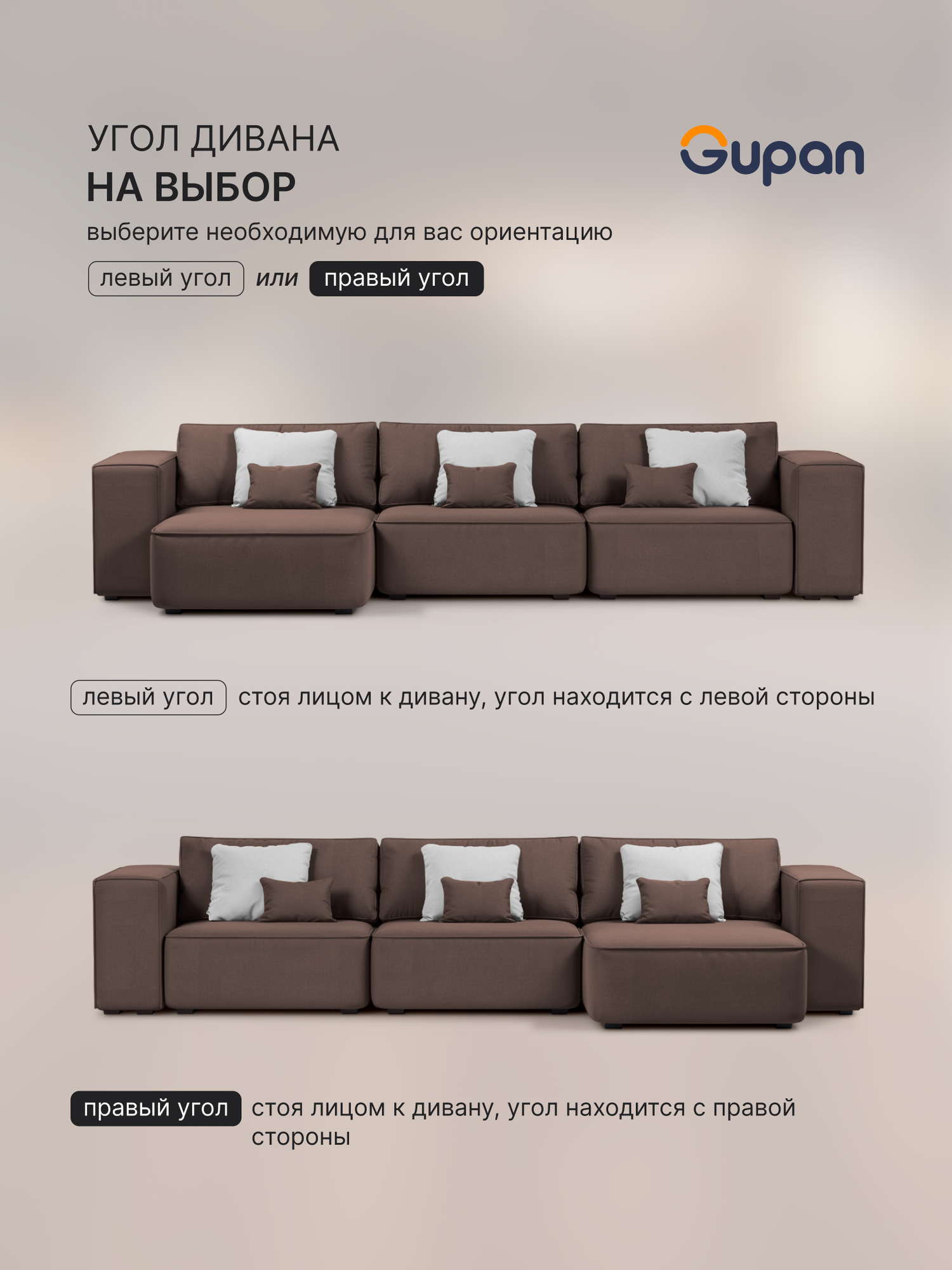 Отзывы на Диван угловой Gupan Фабио / Лофт Велюр Amigo Brown, раскладной, механизм еврокнижка, беспружинный, с ящиком для белья