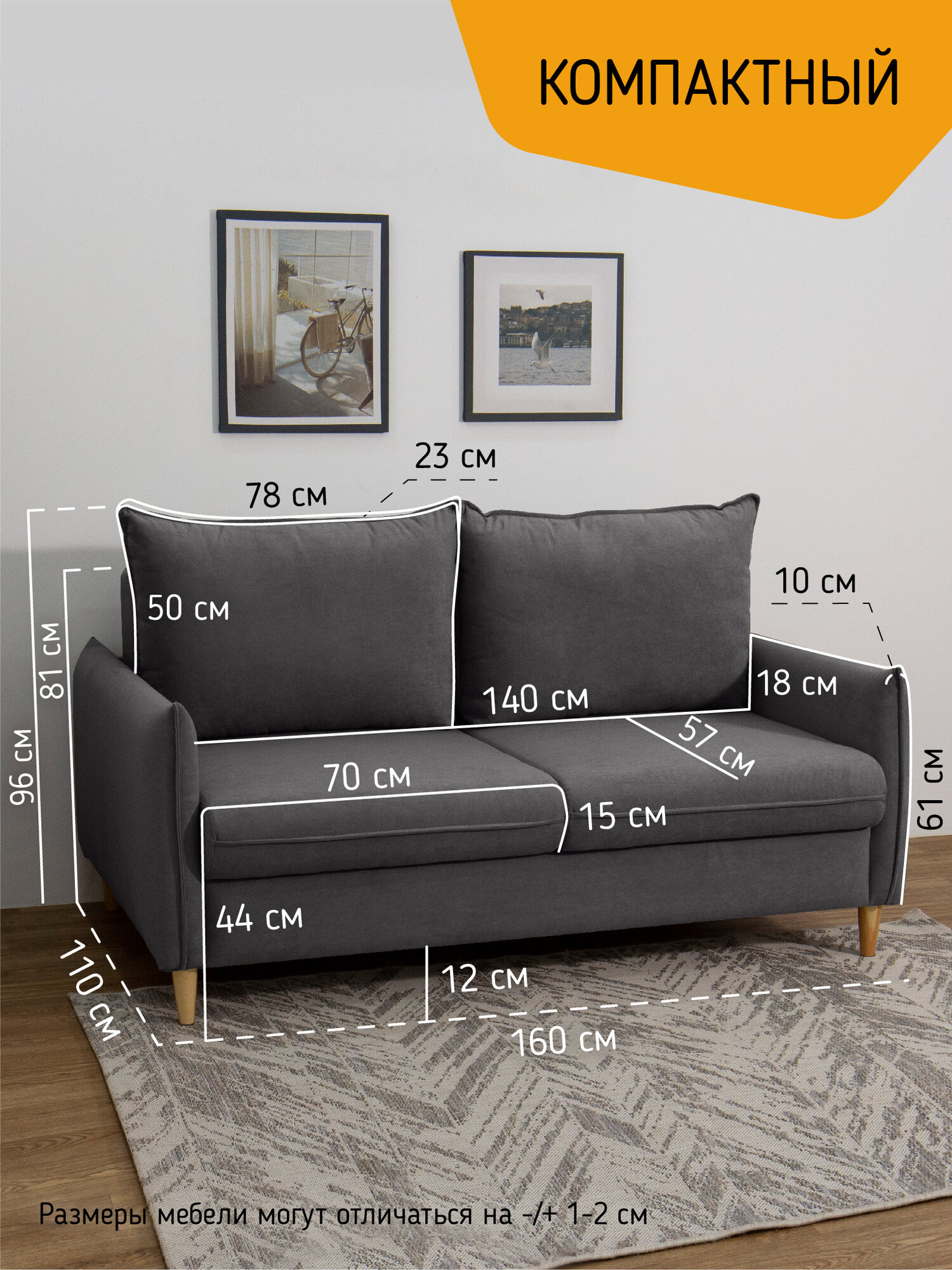 Диван-кровать KRASDIVAN Кайса, размер 160 см, со спальным местом, велюр Бахрия 41 темно-серый информация: